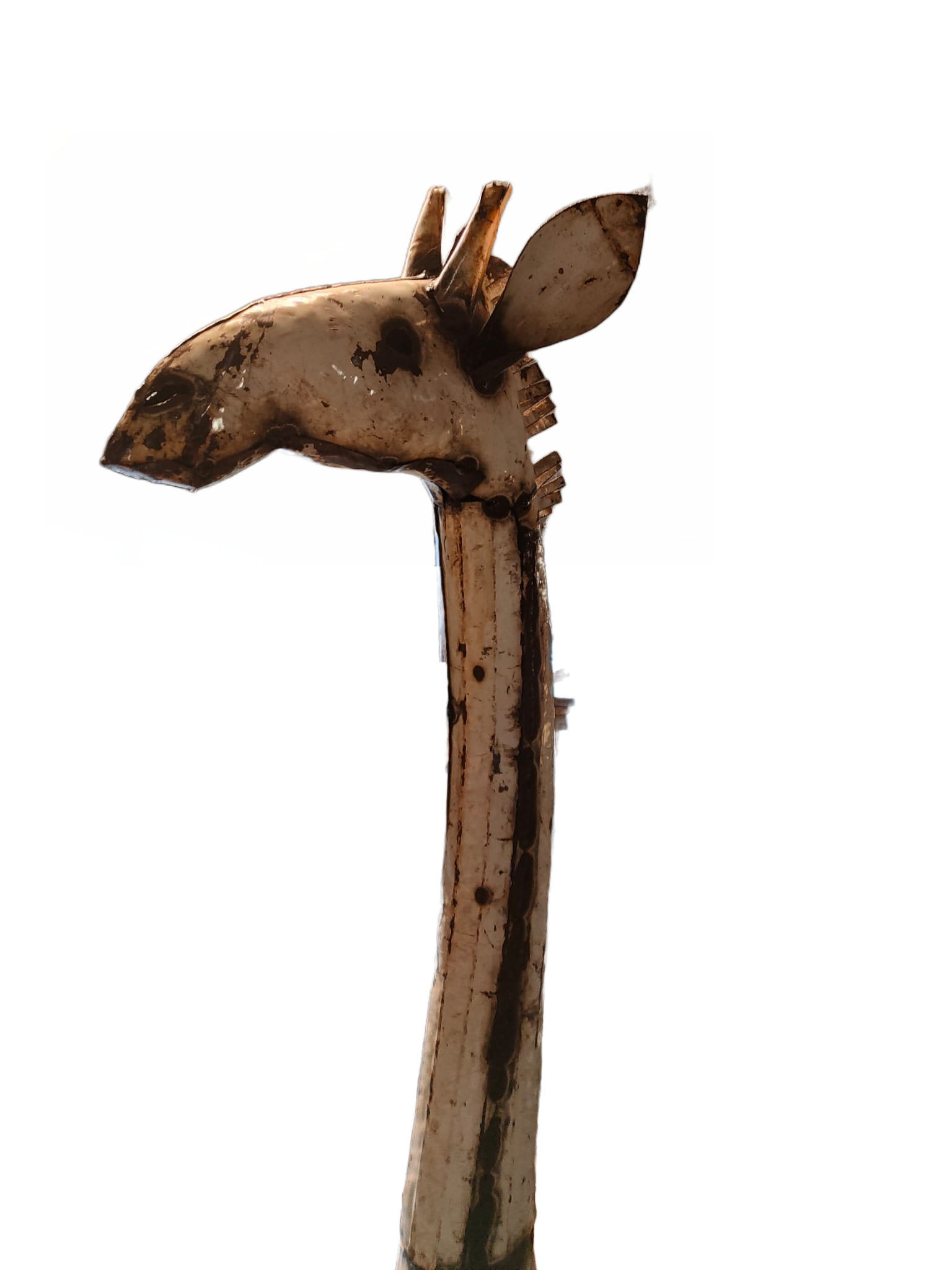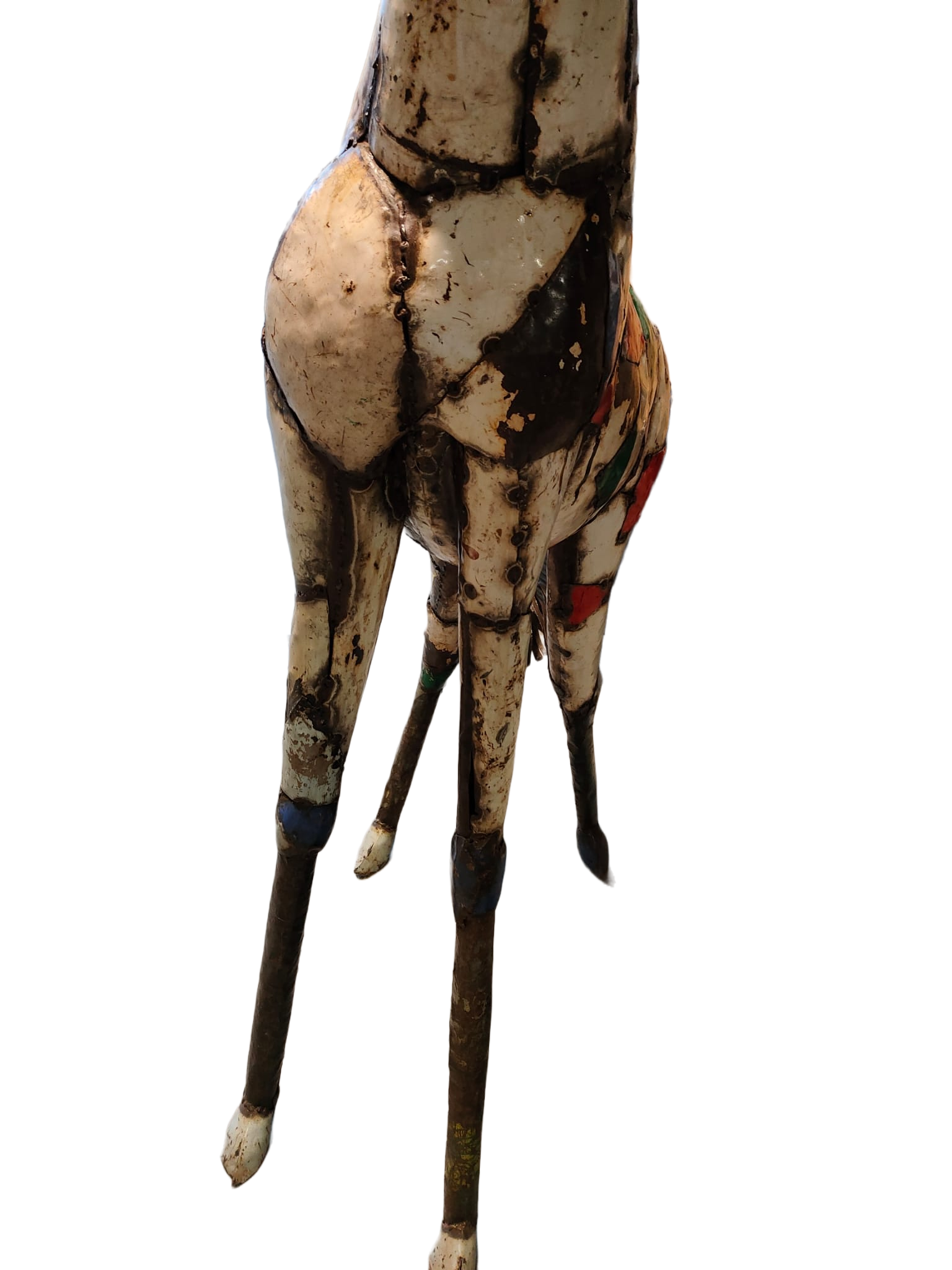 Schitterend afgewerkt metalen figuur van een grote giraffe.