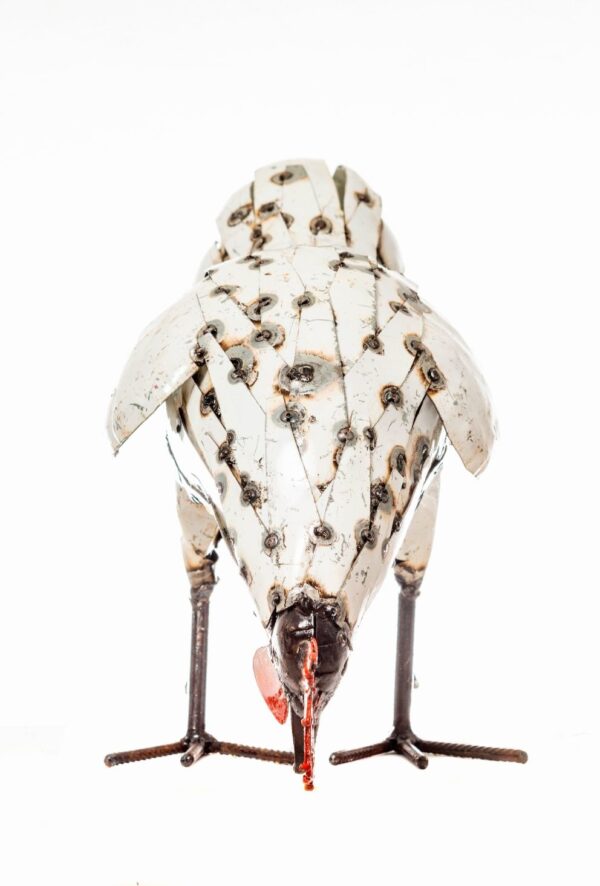 De pikkende kip is helemaal met de hand vervaardigd van ijzer.