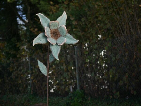 Deze tuinsteker is van absolute topkwaliteit! Het is met de hand vervaardigd en bevat daardoor veel details. De stevige metalen constructie zorgt ervoor dat de tuinsteker blijft staan en dat deze jarenlang mooi blijft. Dit model in de uitvoering met een bloem is kleurrijk met voornamelijk de kleuren goud en groen. Met deze versieringen krijgt u een échte blikvanger in uw tuin!