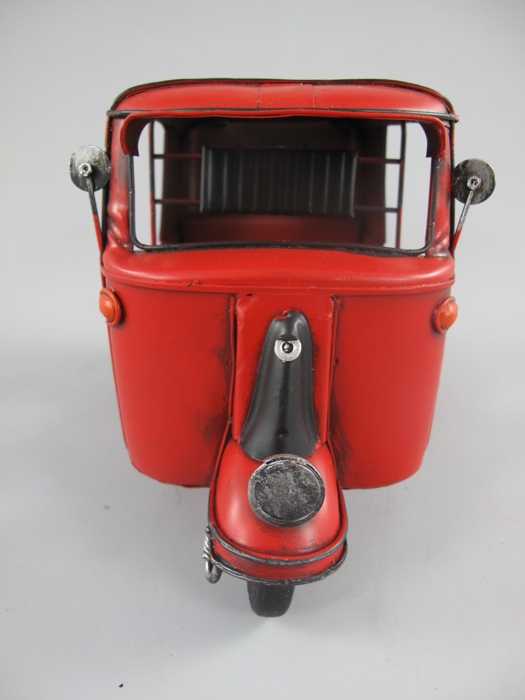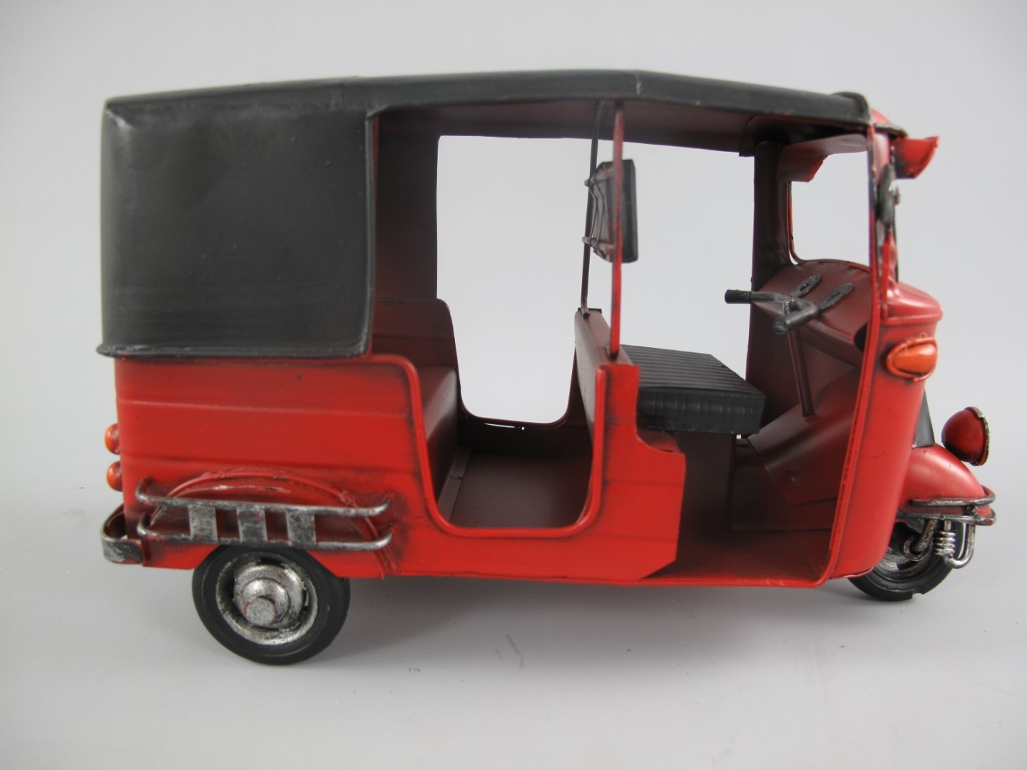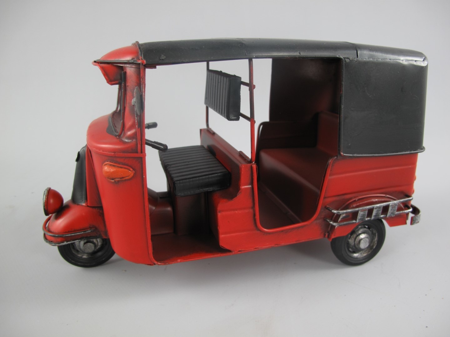 Prachtig met de hand gemaakt model van een rode tuktuk.