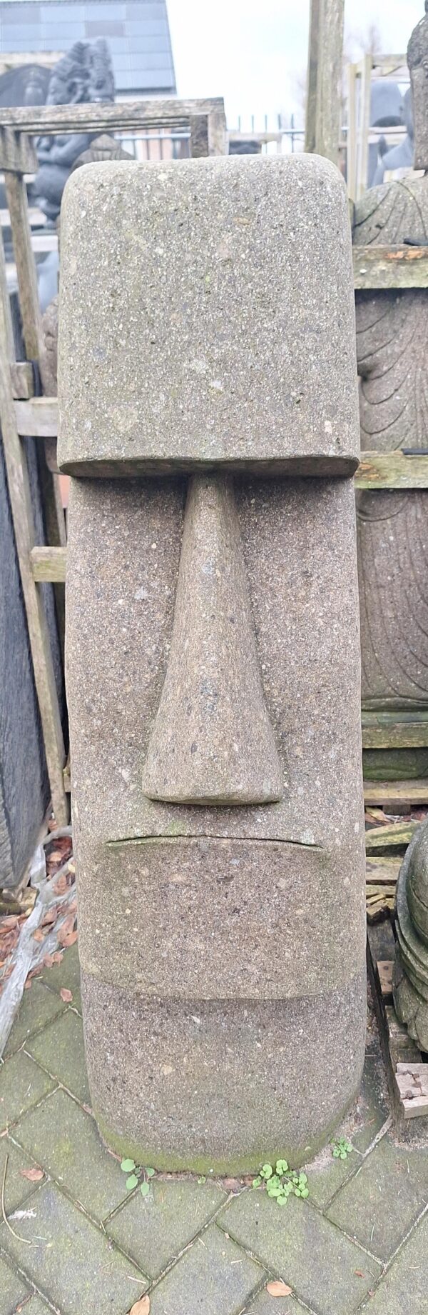 Dit massieve en zware staande beeld van een Moai beeld van het bekende Paaseiland, is met de hand gemaakt uit een blok groene steen. Groene steen is een weersbestendige natuursteen die alle weersinvloeden kunnen weerstaan. De kleur is lichtgroen en kan altijd wat afwijken van de foto omdat heel deze steensoort in diverse tinten groen in de natuur voorkomt.