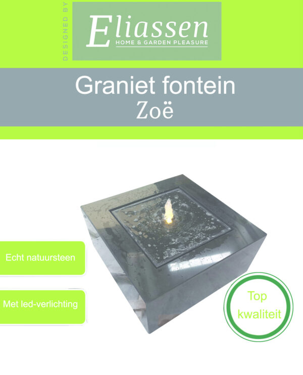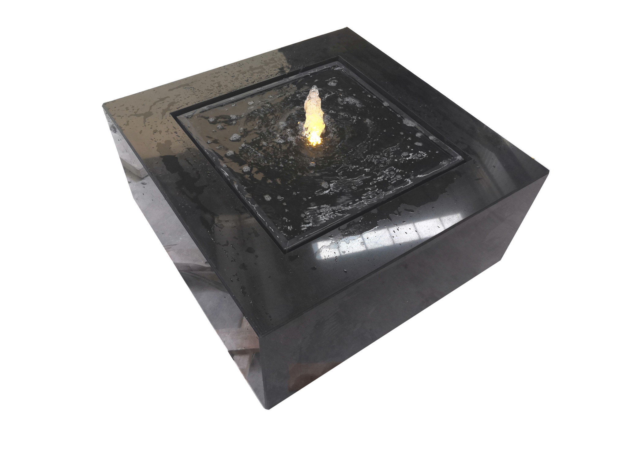 Een prachtig strakke moderne watertafel voor in uw tuin of op het terras, in eigen beheer ontwikkeld en nergens anders te koop. Alles is gemaakt van effen pikzwart gepolijst graniet, wat zorgt voor een zeer strakke en moderne sfeer. Voor dit model is geen graafwerk nodig, omdat de watervoorraad zich in de bak bevindt. Wordt compleet geleverd met pomp, slang, waterverdeler, leds, en gebruiksaanwijzing. Voor een complete werking heeft u 2 stopcontacten nodig.