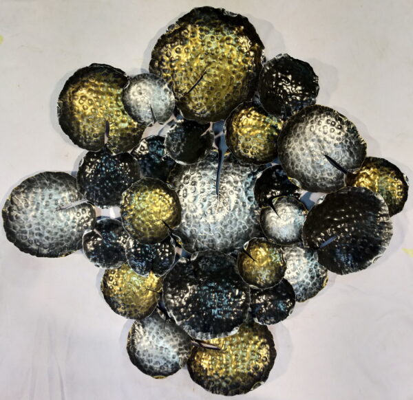 Bent u op zoek naar een wanddecoratie die direct de aandacht trekt en uw interieur een luxe uitstraling geeft? De Muurdecoratie 3d Lilly is een prachtig artistiek vormgegeven wandobject, geïnspireerd op de natuur. Het ontwerp bestaat uit een dynamische samenstelling van metalen schijven die zijn vormgegeven als waterleliebladeren. Deze speelse cluster zorgt voor een organisch en ruimtelijk effect aan uw muur.