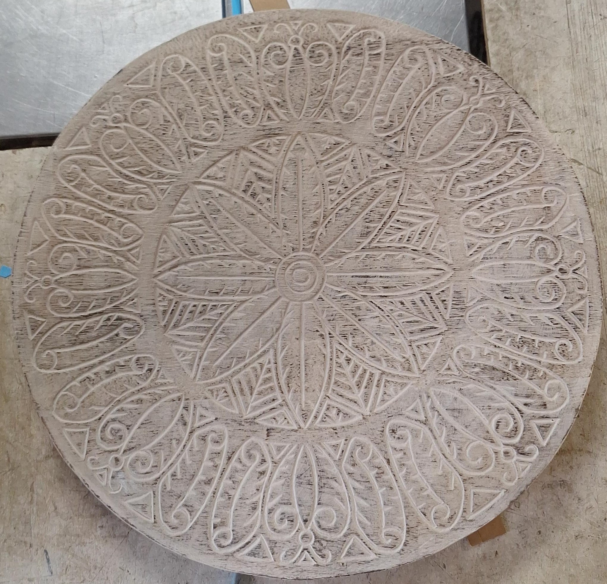 Houten muurdecoratie gemaakt van een massieve plaat tropisch hout, met daarin handmatig gesneden decoratie motieven