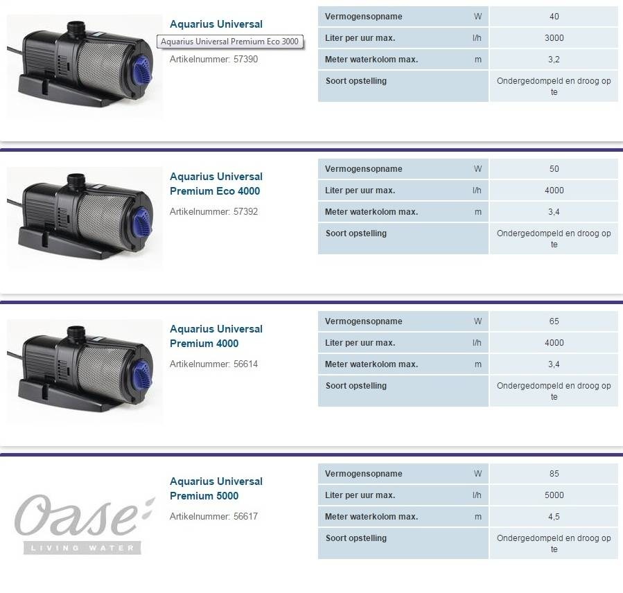 oase Pompen 1000-12000 ltr voor proffessioneel gebruik.