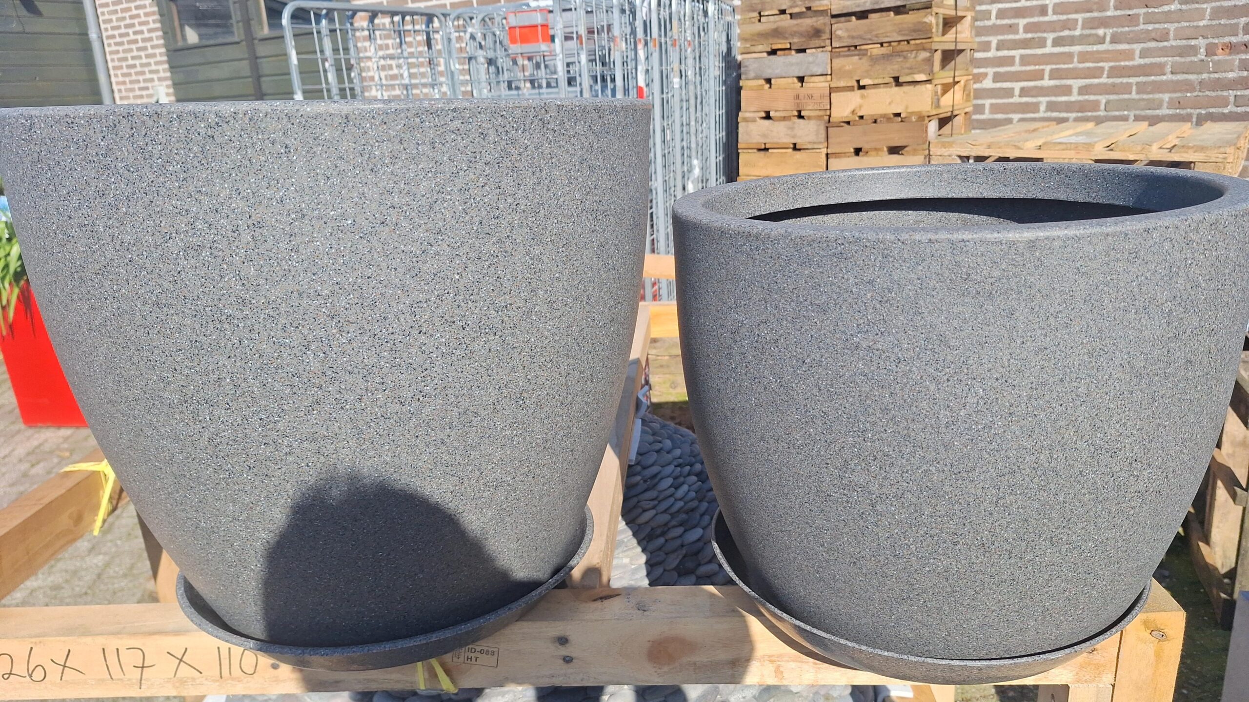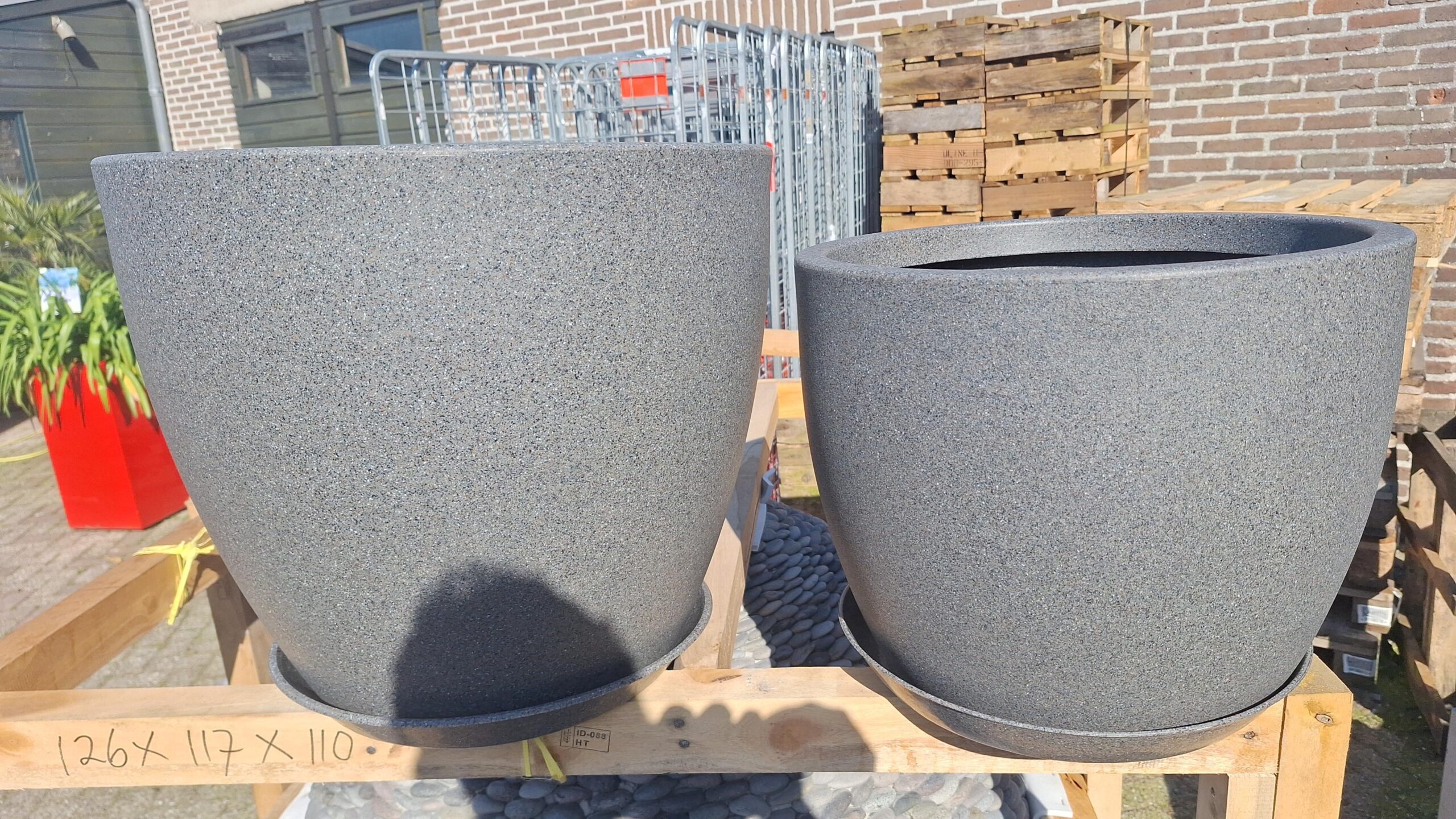 De Odin pottenset bestaat uit twee stijlvolle, ronde plantenbakken in de kleur grijs (35cm en 40cm hoog) die prachtig met elkaar te combineren zijn. Ze zijn gemaakt van uv-bestendig en slagvast kunststof via een rotatiegiettechniek, waardoor ze extreem lang meegaan en perfect zijn voor zowel binnen als buiten. De set wordt helemaal compleet geleverd inclusief twee handige, bijpassende schotels.
