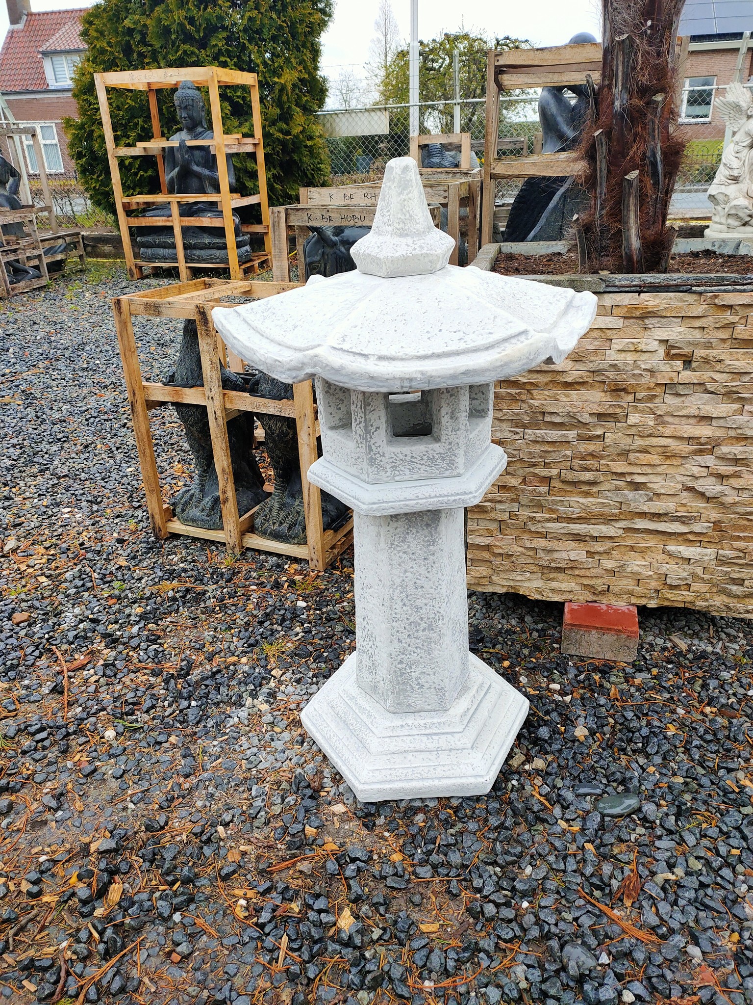 Pagode lamp, of chinese lamp, gemaakt van massief wit beton, zal uw oosterse tuin aanzienlijk sfeervoller maken.