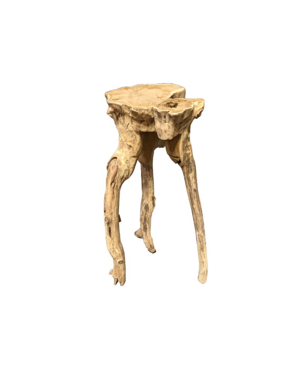 Dit is pas apart. Deze plantentafel van grillig teakhout en dito blad. Dit meubelstuk staat onopvallend in uw landelijk interieur met zijn natuurlijke vormen. Met een mooie plant erop een prachtige combinatie !
