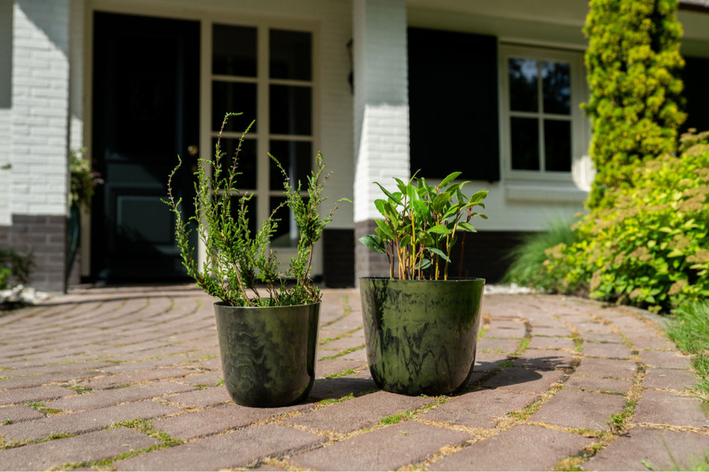 Hagelnieuw is deze serie Palermo serie potten. Gemaakt van het zeer sterke, nauwelijks breekbare en onverslijtbare melamine. Wie kent melamine niet van serviezen, meubels en ander huis, tuin en keuken gerei.