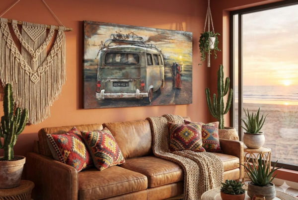 Dit metalen 3D schilderij met verliefd echtpaar naast een VW camper is een goede toevoeging in uw interieur wanneer u uw interieur wilt opvrolijken en gezelligheid wilt toevoegen. Op het 3d wandobject zijn warme kleuren en een subtiele afbeelding te zien. Dit 3d wanddecoratie komt dus goed tot zijn recht in een huiskamer. Voornamelijk doet hij het erg goed in gezellige ruimtes vanwege de toepasselijke sfeerrijke afbeelding.