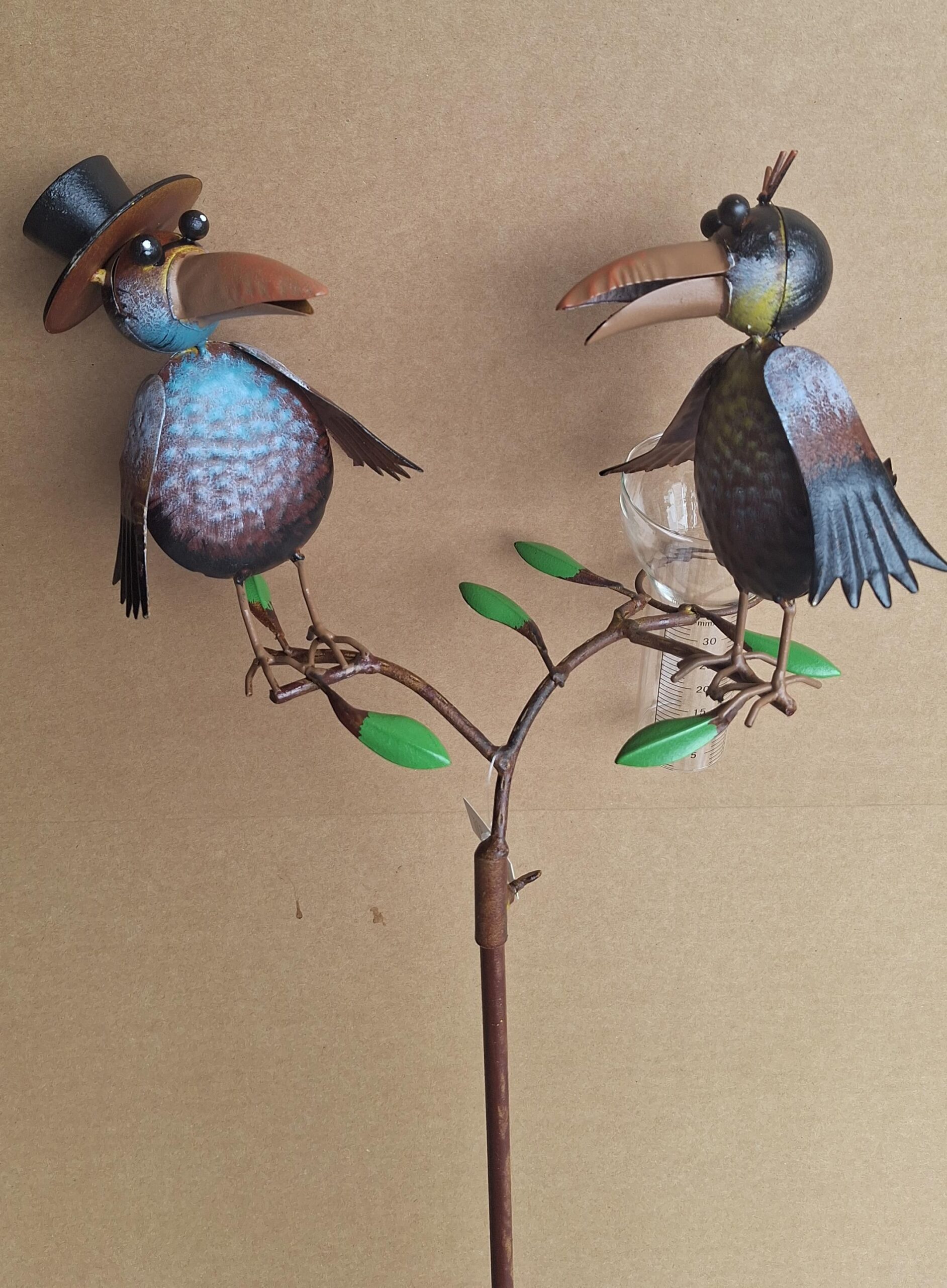 Maakt u uw zelf of iemand anders blij met deze vrolijke tuinsteker met een tweetal vogels waarbij je tevens de neerslag kunt meten?