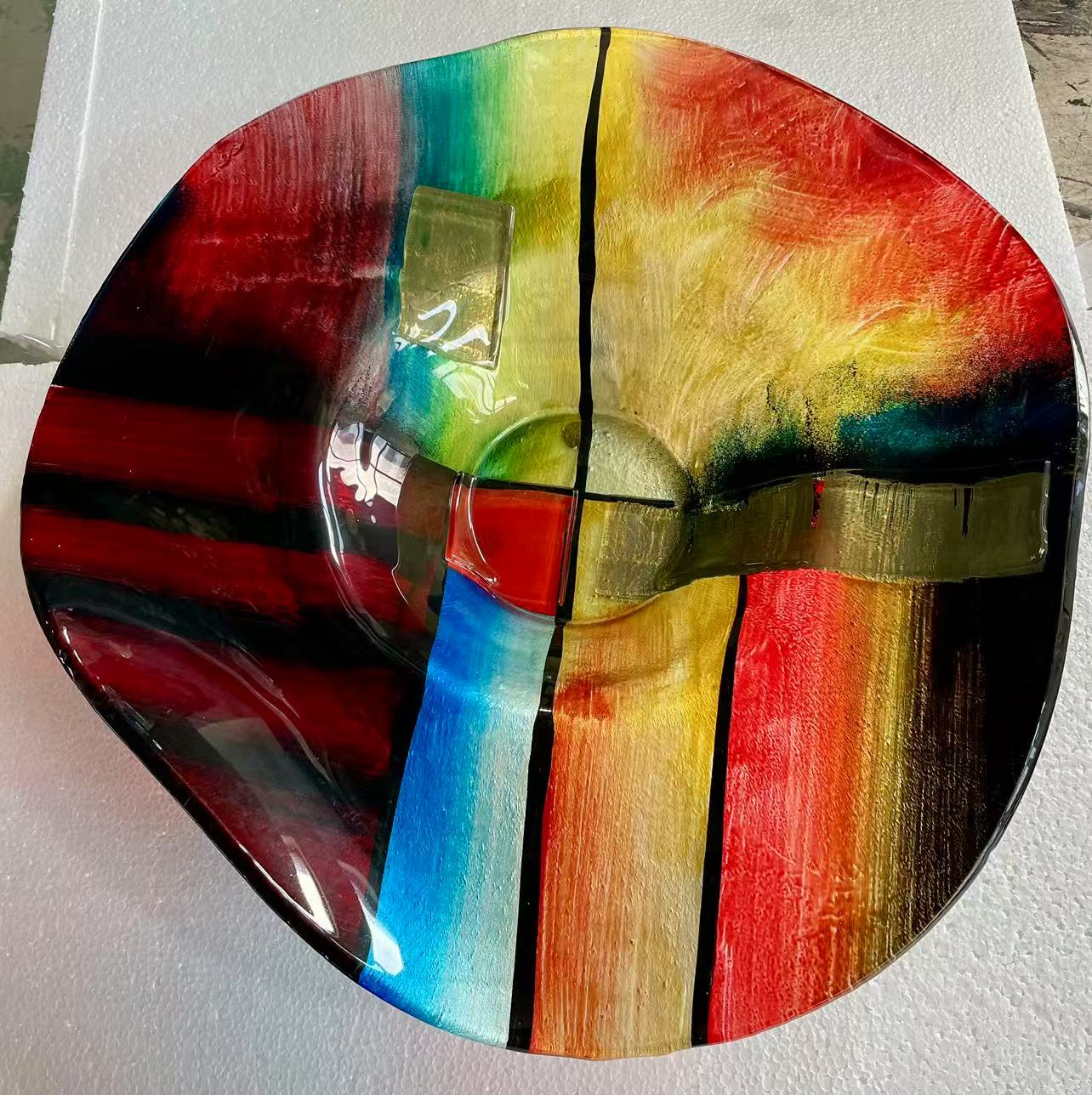 Dit model glasschaal is een geschikt model als u op zoek bent naar een spetterende en kleurrijke toevoeging in uw huis met moderne stijl en klasse. Ook voor op kantoor zorgt dit product voor een échte eyecatcher omdat deze schaal uniek is in zijn soort en kleuren in Giulia stijl.