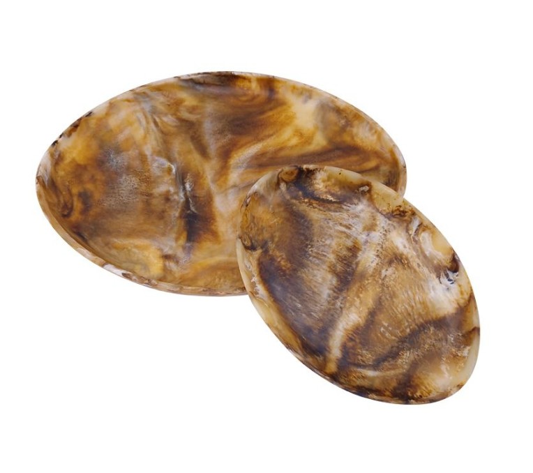 Deze prachtige, zeer exclusieve ovale schaal is handgemaakt en gemaakt van hars. De prachtige gemêleerde bruin tinten zijn bij elke schaal verschillende aangezien het om een natuurproduct gaat.