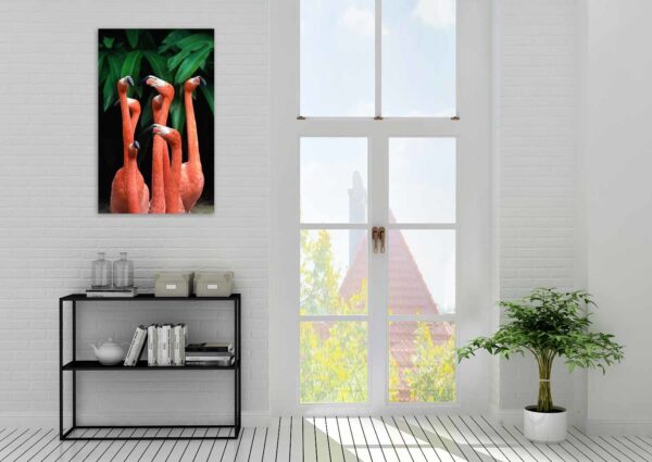 Schilderij dibond groep Flamingo’s staand 118x70cm