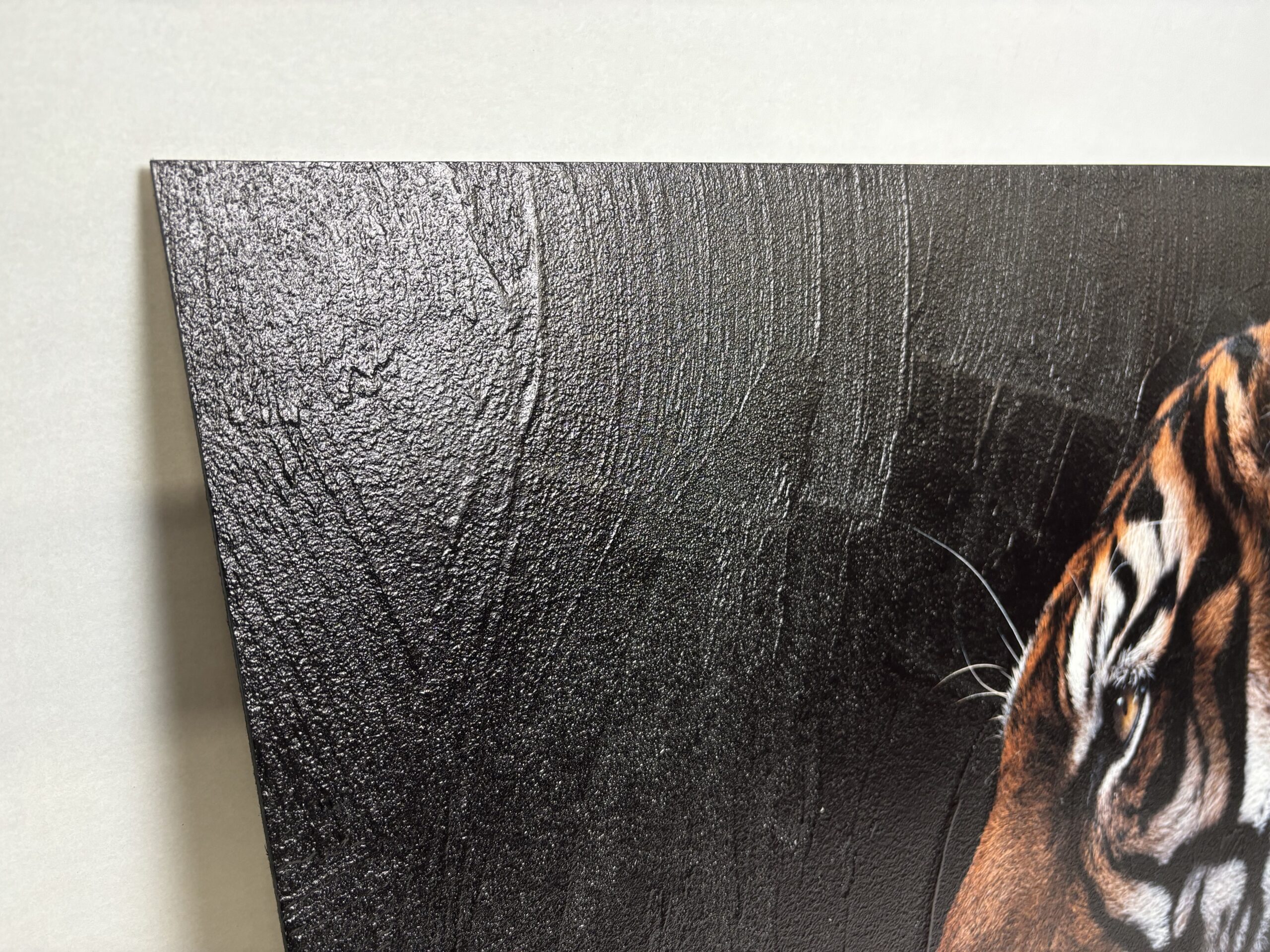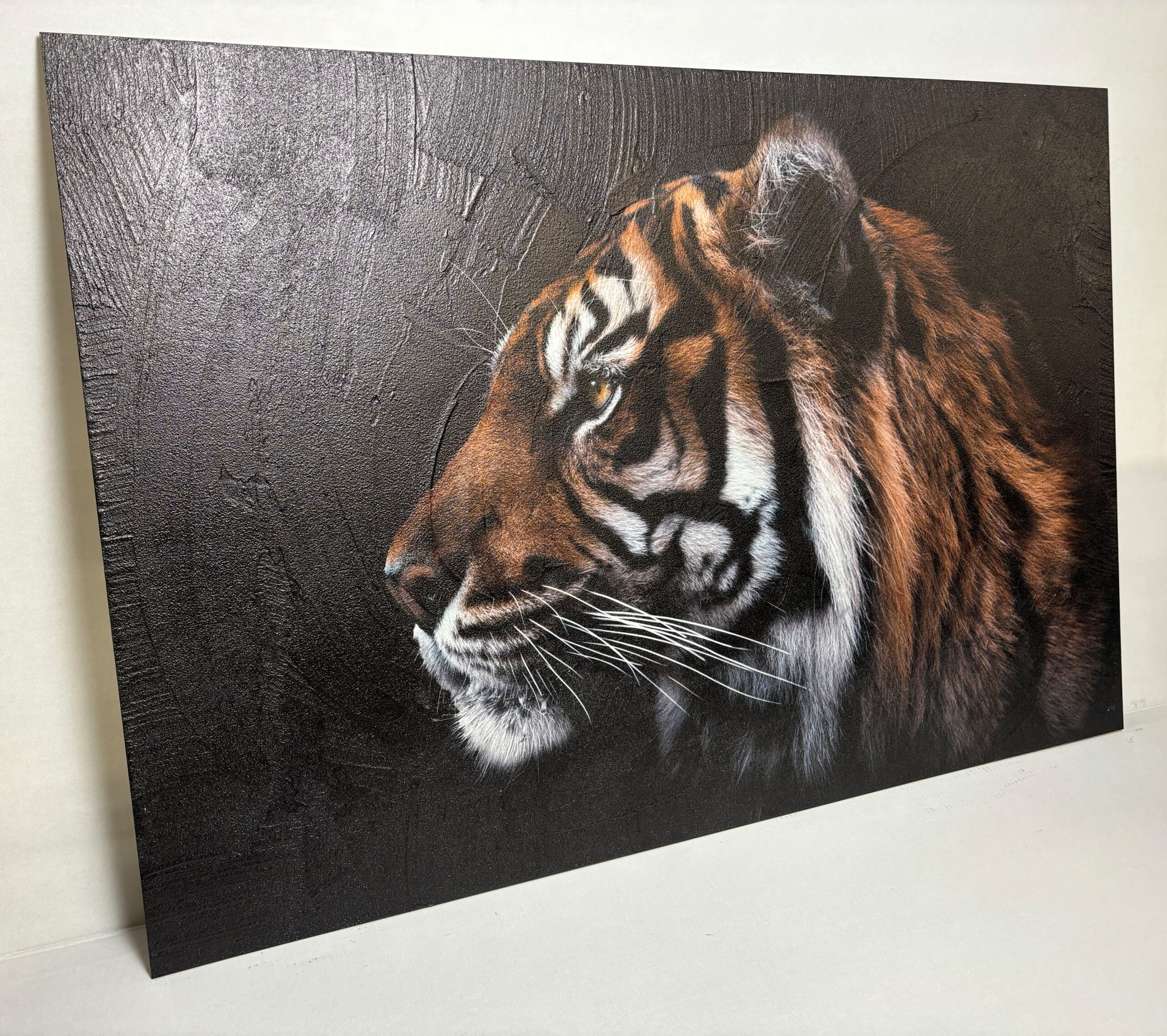 Wilt u een prachtig scherp schilderij met de afbeelding van een tijger maar u vindt glas te veel glanzen? Dan is deze serie schilderijen een goed alternatief. Dit schilderij is gemaakt van een structuur paneel mdf, waarop deze afbeelding haarscherp is afgebeeld, in een mooie zijdeglans uitstraling. Van spiegeling heeft u met dit type schilderij geen last. Aan de achterzijde is dit schilderij versterkt met een 15mm dik mdf kader.