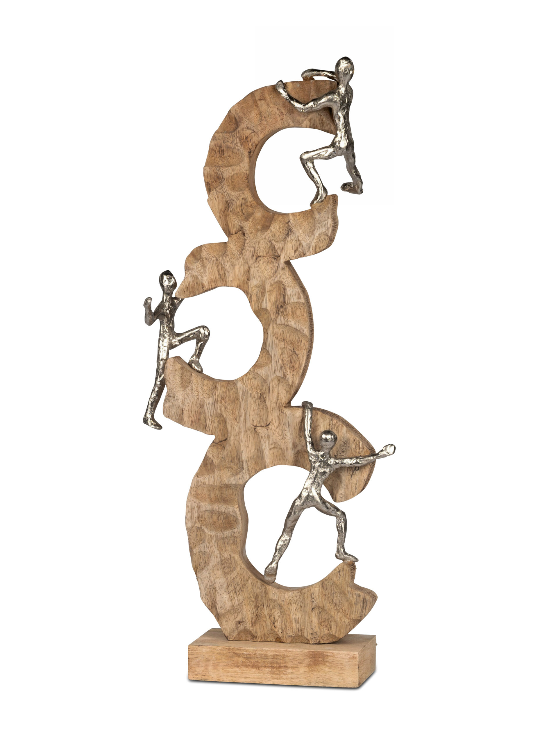 Dit aluminium figuur in combinatie met mango-hout. Mango hout is een duurzame hardhoutsoort en is ecologisch verantwoord omdat het is gebruikt nadat de boom geen vruchten meer draagt.