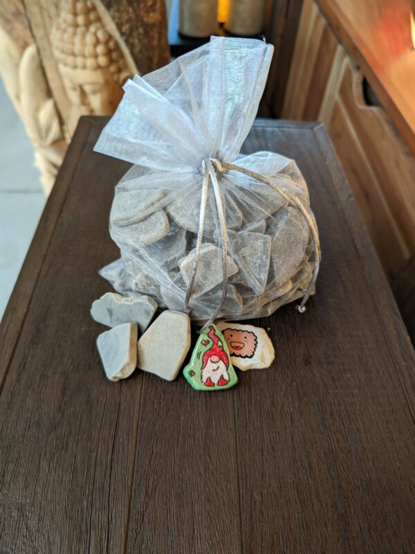 Deze schilder stenen zijn gewassen en gesorteerd; er zullen vrijwel geen gebroken of halve keien in de zak zitten. Enkel de happy stones uit de zakken zijn geselecteerd voor deze gesorteerde zakken om te beschilderen. Bij enkele gevallen kan het zijn dat er maar één kant volledig glad is.