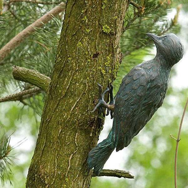 Mooi beeld een specht van hoogwaardig brons met een minimale kopergehalte van 75% waardoor een zeer lange levensduur gegarandeerd is.