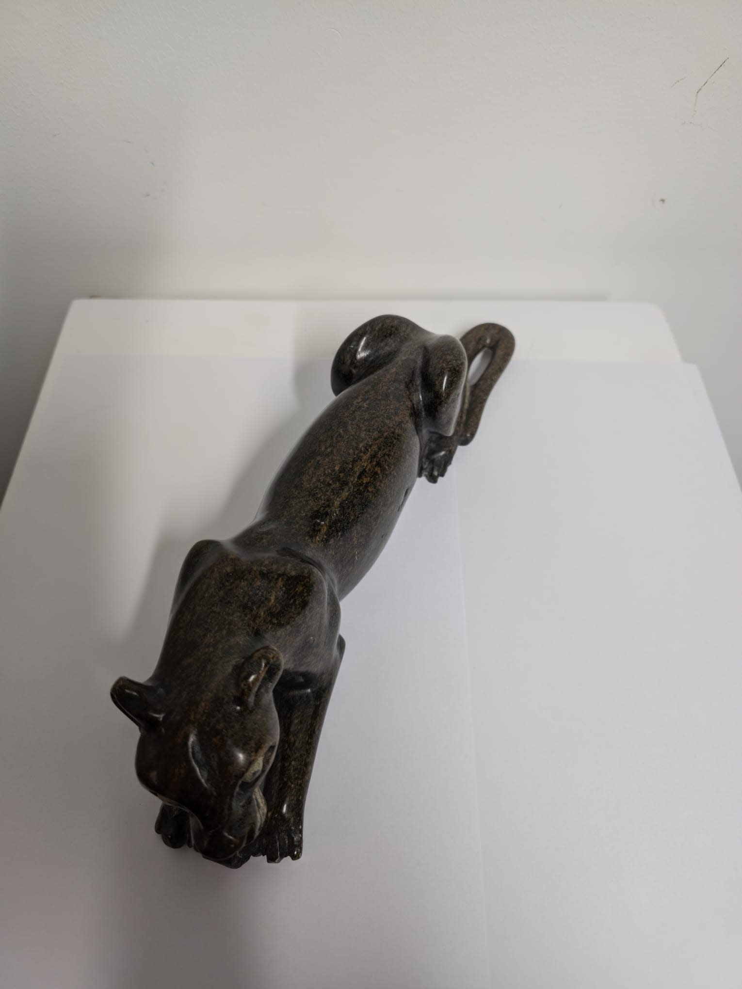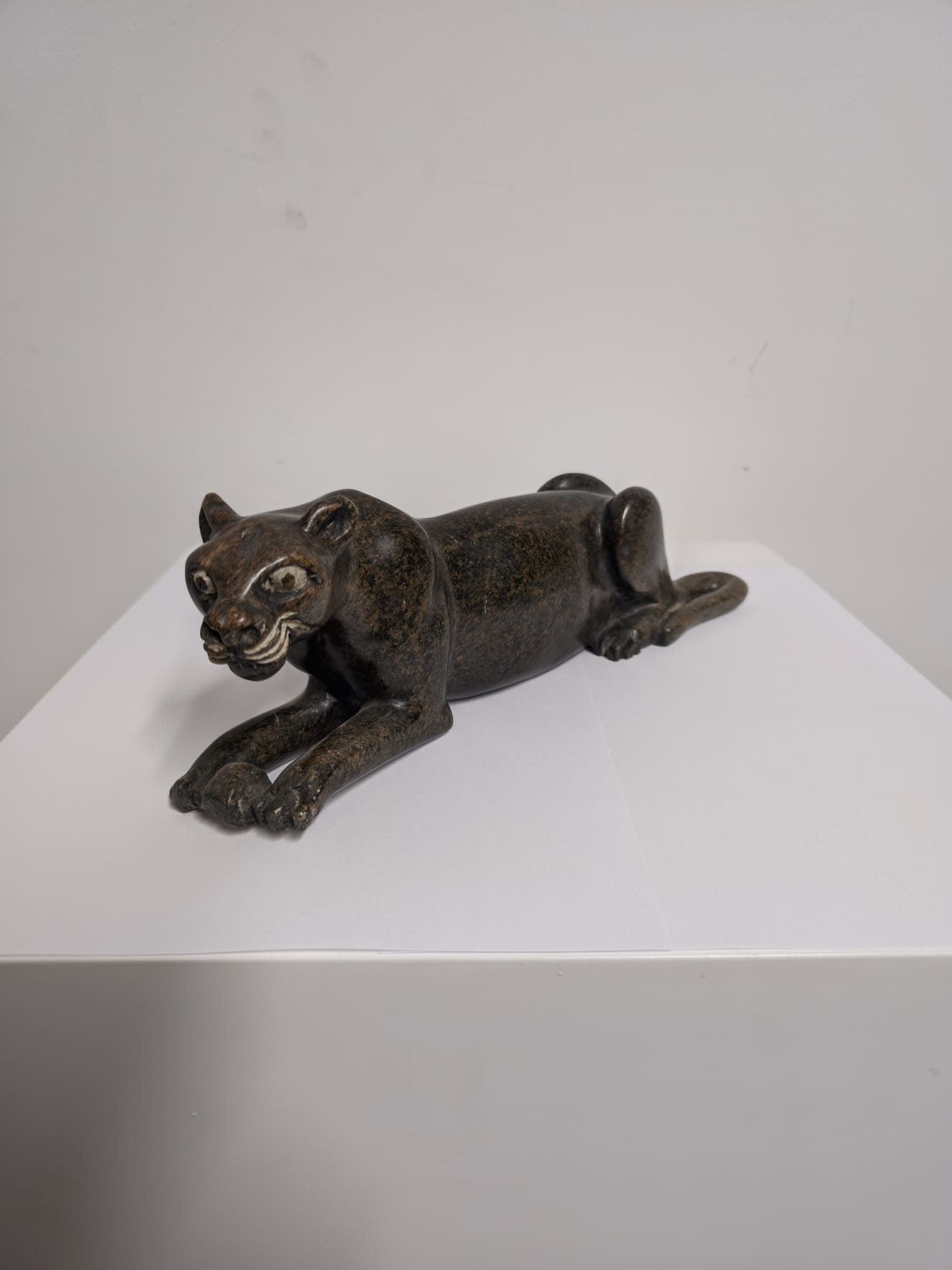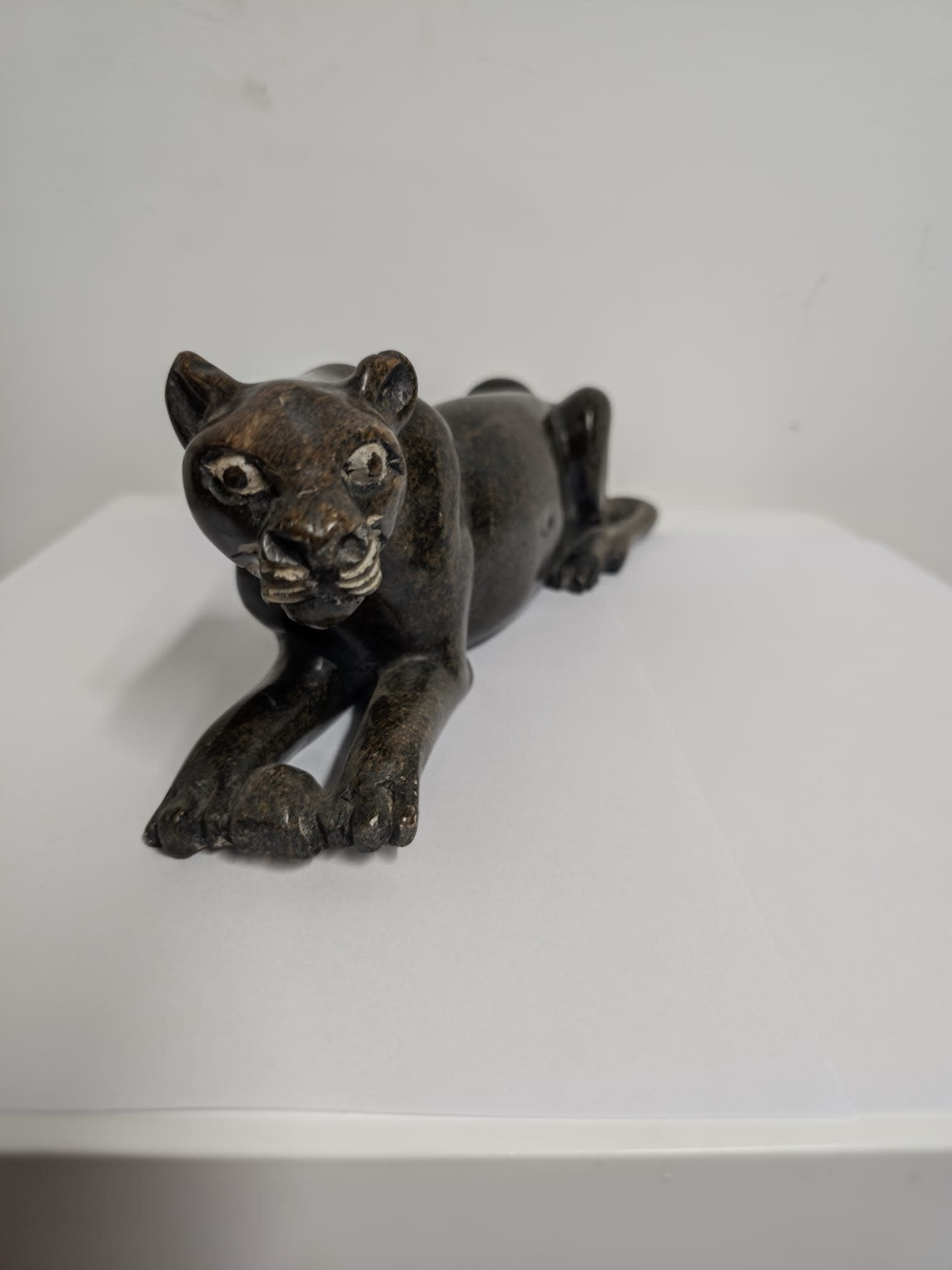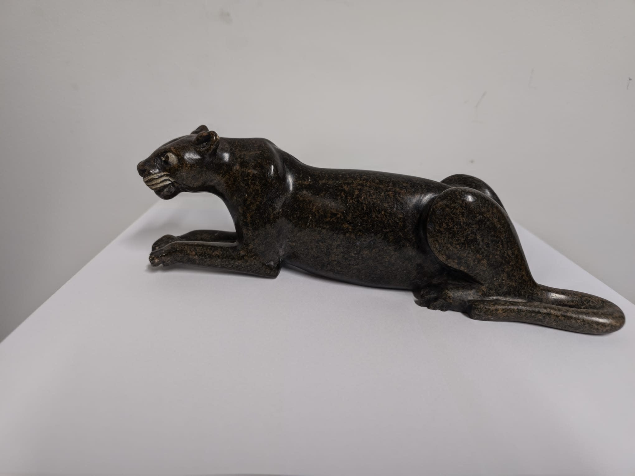 Dit model beeld met de beeltenis van een zwarte panter die ligt kan afwijken van de foto qua kleur en vorm, aangezien het handwerk is en tevens een natuur materiaal.