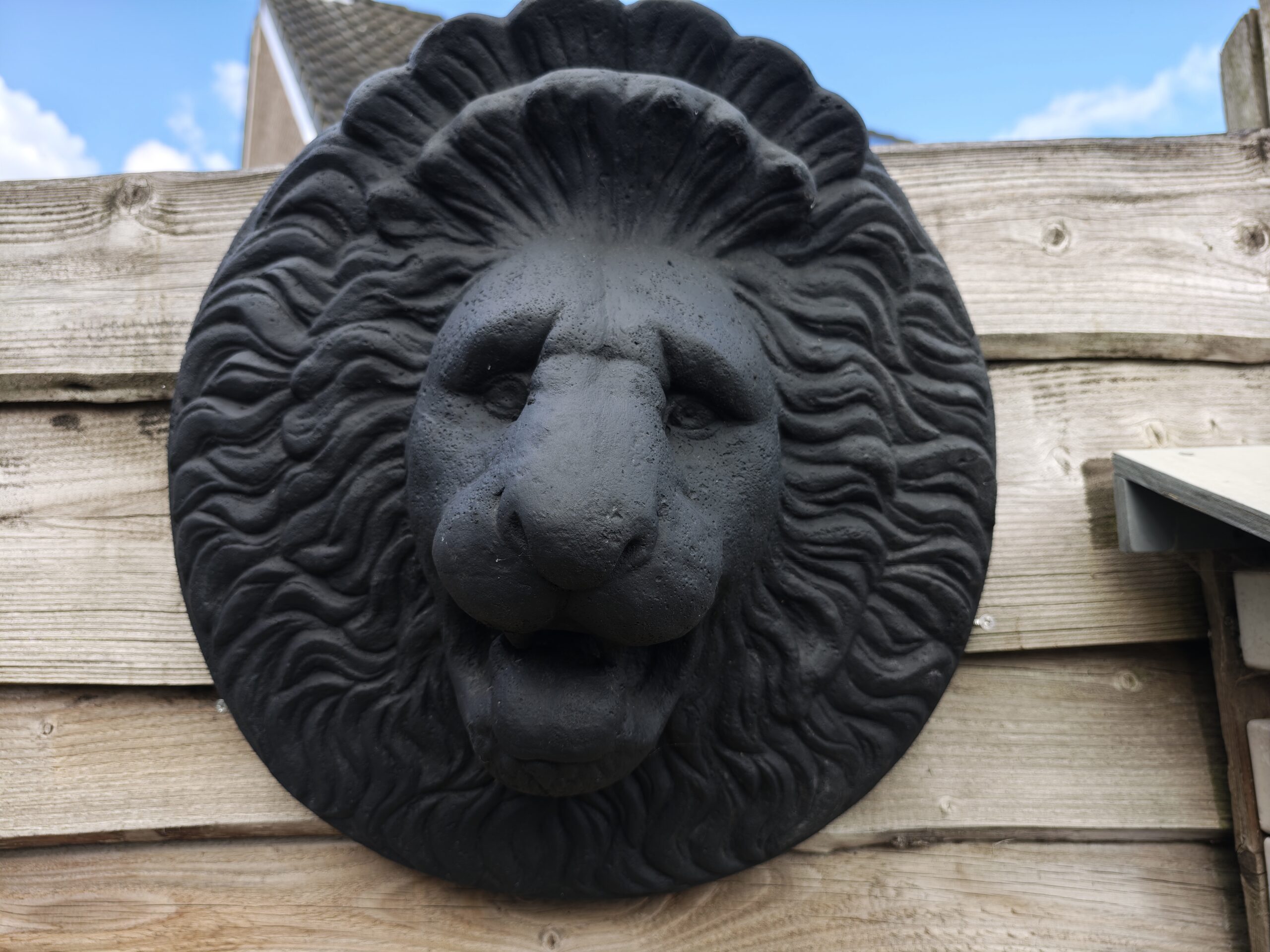 Hangende , eventueel spuitende leeuwenkop van hoge kwaliteit gietsteen, zwart/bruin. In De overige benodigdheden kunt u vinden bij “benodigdheden”. Benodigde pomp is 1500 ltr.