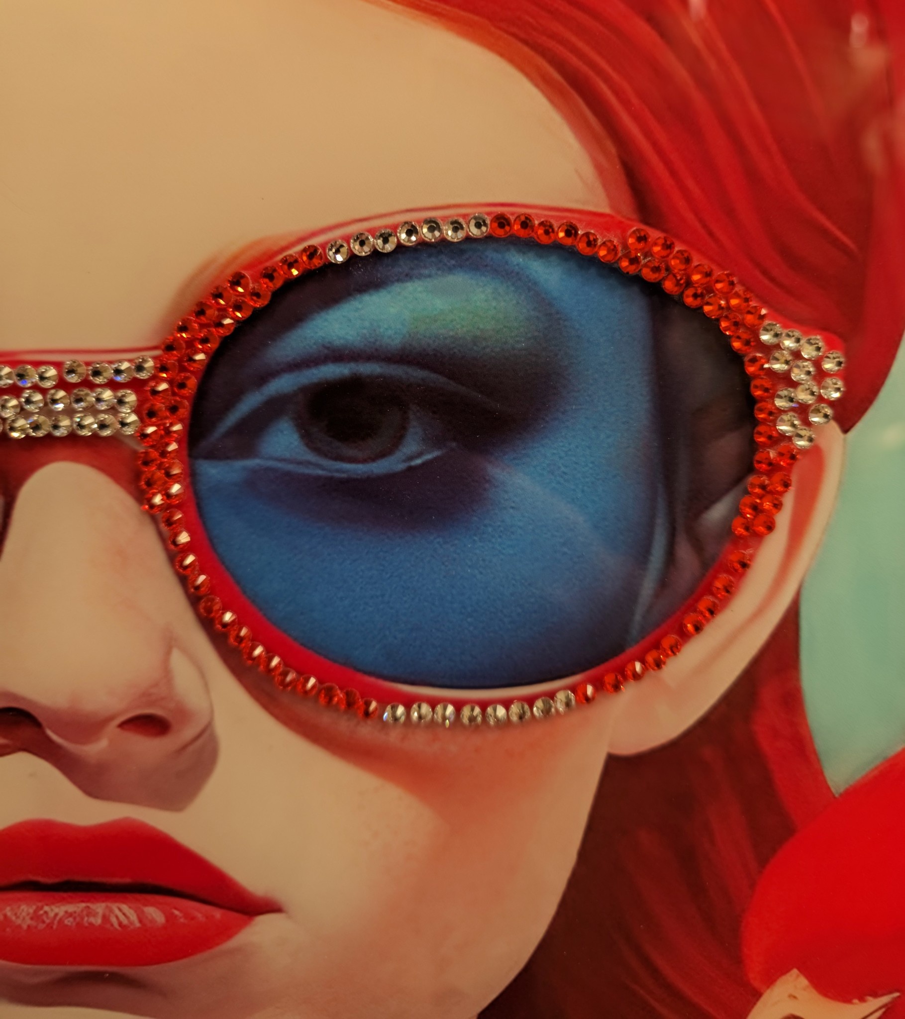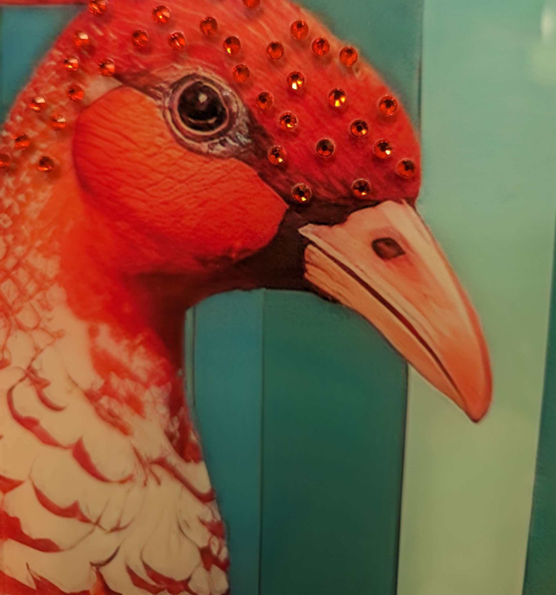 Bent u op zoek naar een hyper modern glasschilderij met verschillende strass accenten? Dan is dit model schilderij van glas met een vrouwelijk persoon in vele verschillende kleuren zeker iets voor u. Dit hoge glasschilderij heeft zeer mooie accenten met steentjes op de bril en de oranje vogel, is zorgvuldig gemaakt met de mooiste kleurcomposities en met veel aandacht voor de finishing touch!