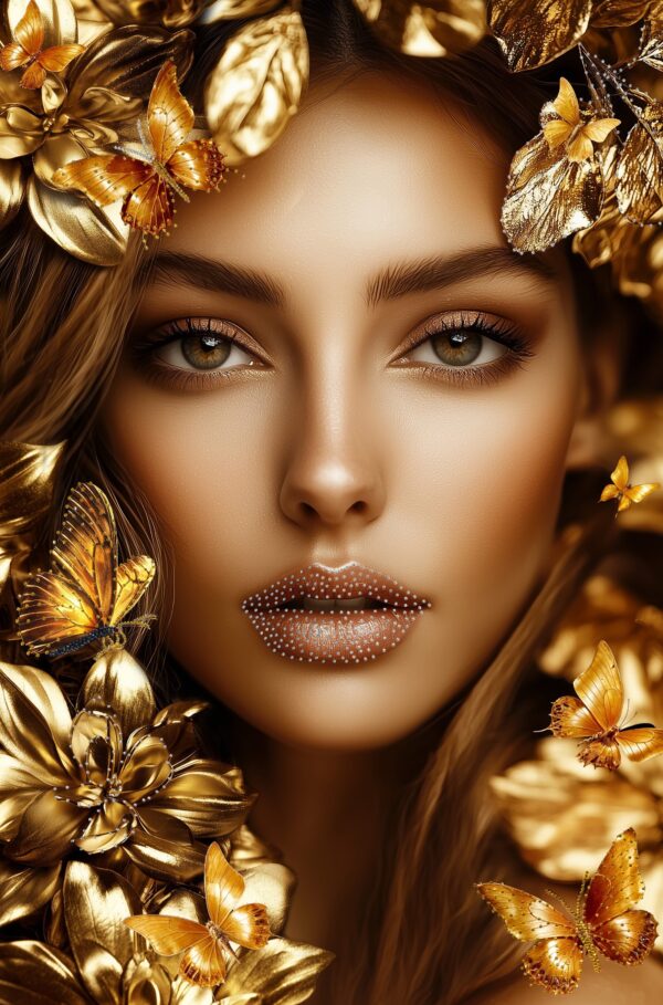 Bent u op zoek naar een hypermodern glasschilderij met verschillende strass accenten? Dan is dit model schilderij van glas met een vrouw in het goud in een goudgekleurde omgeving zeker iets voor u. Dit unieke glas schilderij heeft zeer mooie accenten met steentjes op de lippen en bloemen. Zorgvuldig gemaakt met de mooiste kleurcomposities en met veel aandacht voor de finishing touch!