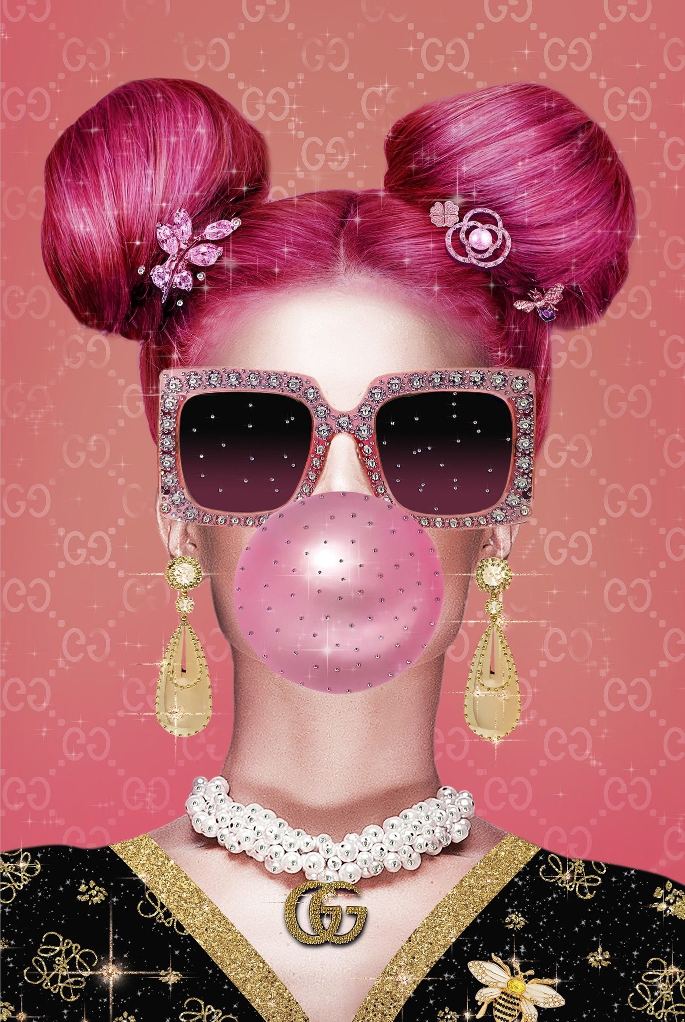 Strass glasschilderij Gucci Kauwgom bel 80x120cm