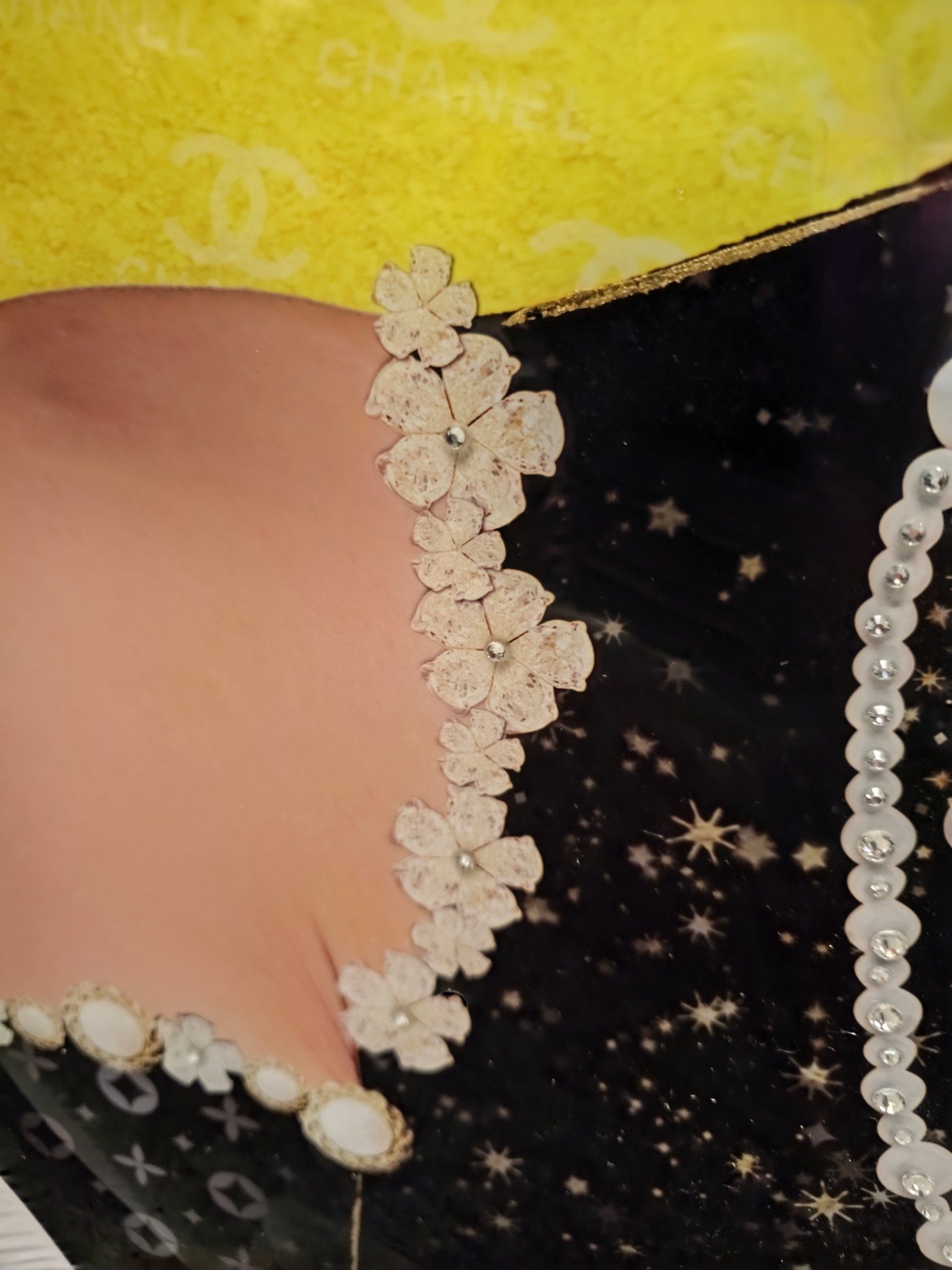 Resultaat is dan een prachtig hoogglans schilderij waarbij de strass steentjes voor de hippe maar ook chique uitstraling zorgt.