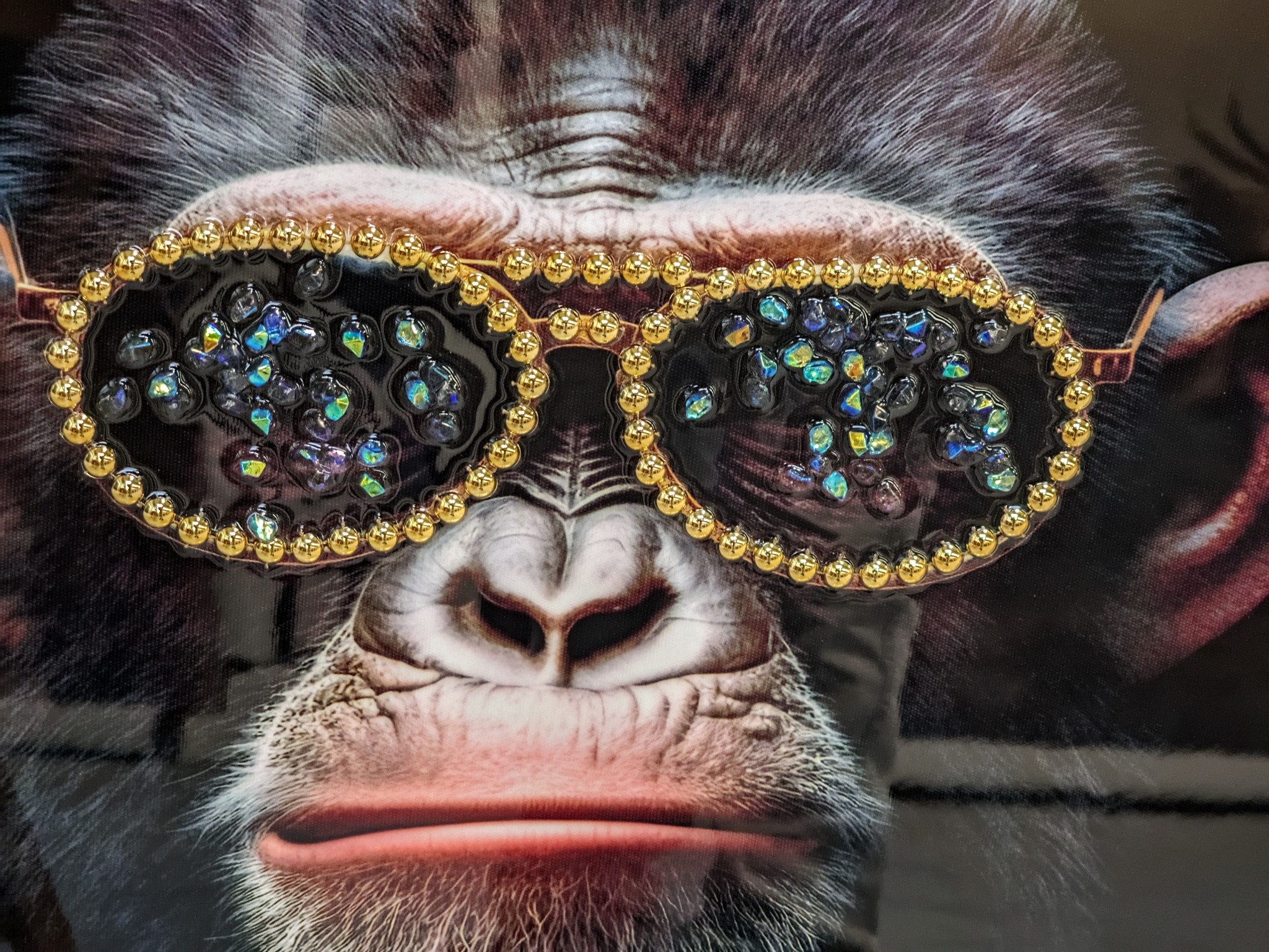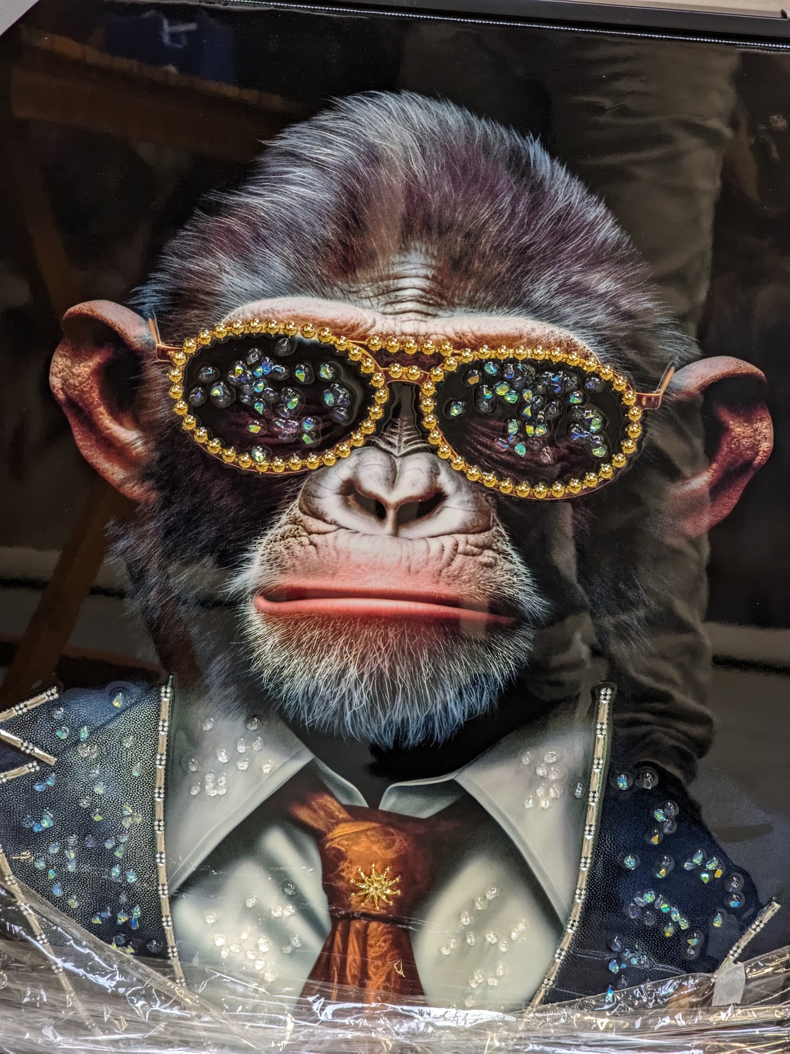 Strass schilderij Aap met zwarte jas 52x73cm hoogglans