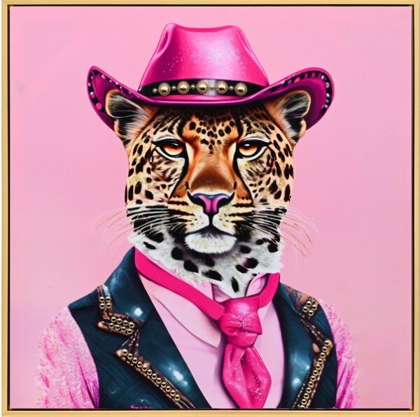 Bent u op zoek naar een hypermodern canvas schilderij met verschillende strass accenten? Dan is dit model hoogglans strass schilderij met een trots, aangeklede cheetah met een roze hoed op zeker iets voor u. Dit vierkante canvas schilderij heeft zeer mooie accenten met steentjes op de kleding van de cheetah, is zorgvuldig gemaakt met de mooiste kleurcomposities en met veel aandacht voor de finishing touch!