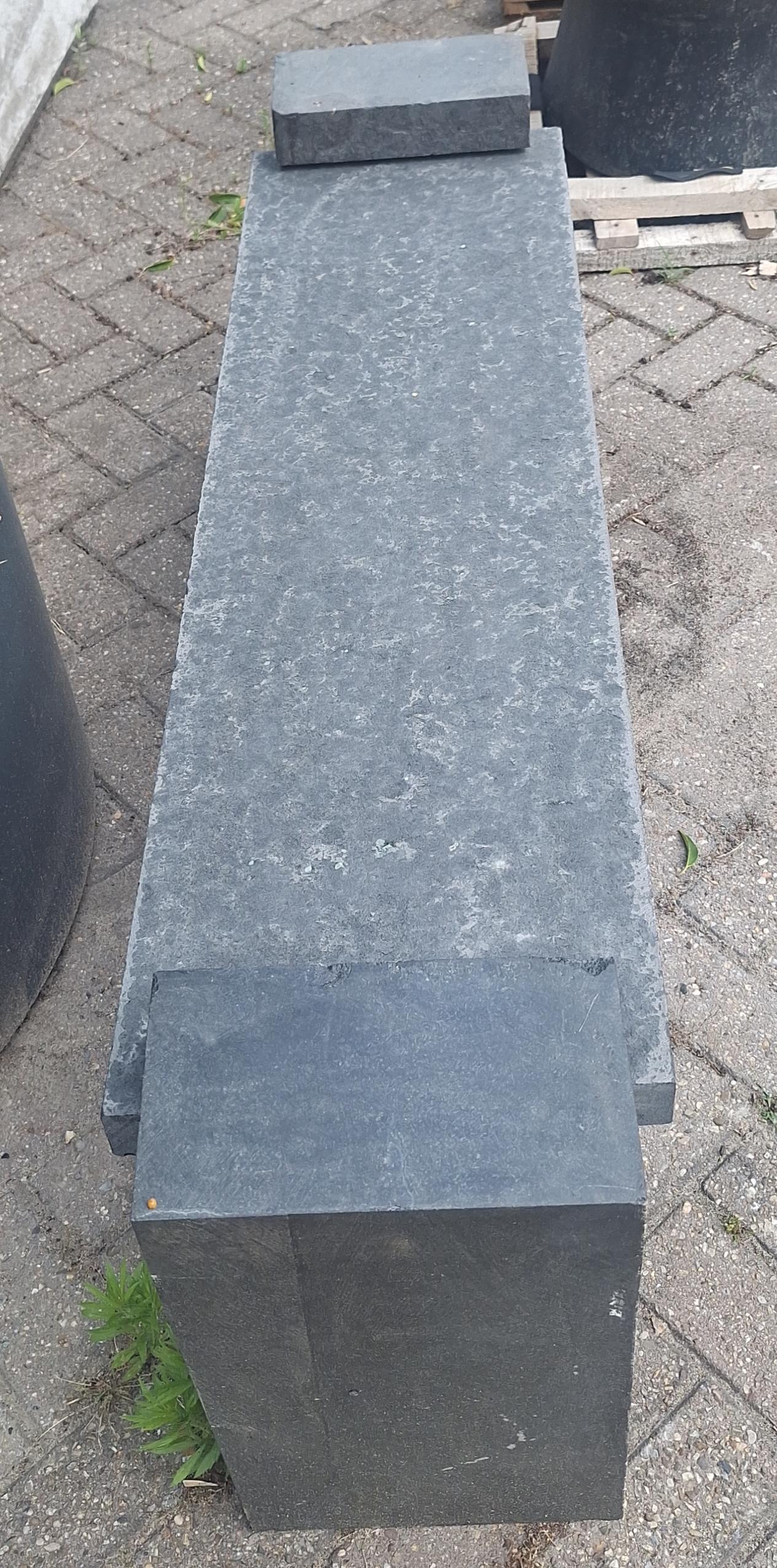 - Gebrande zitplaat van 5 cm dik, poten gehamerd.