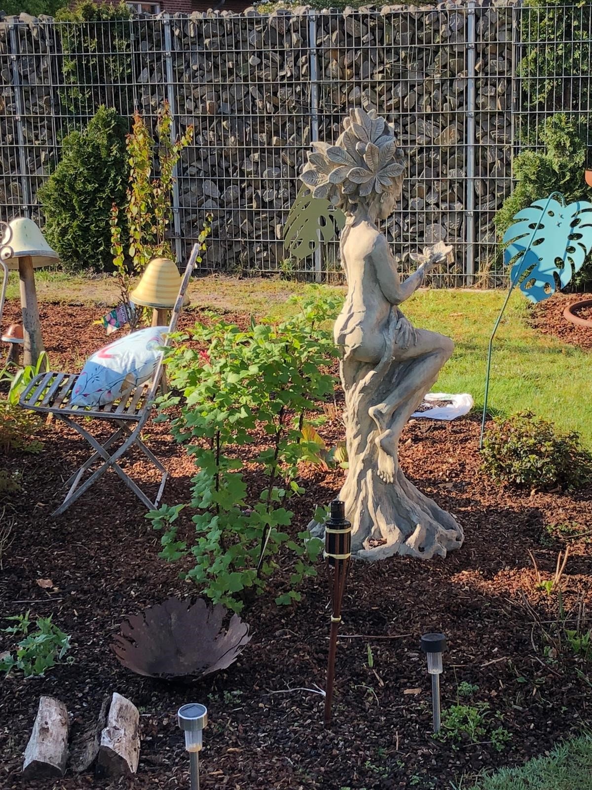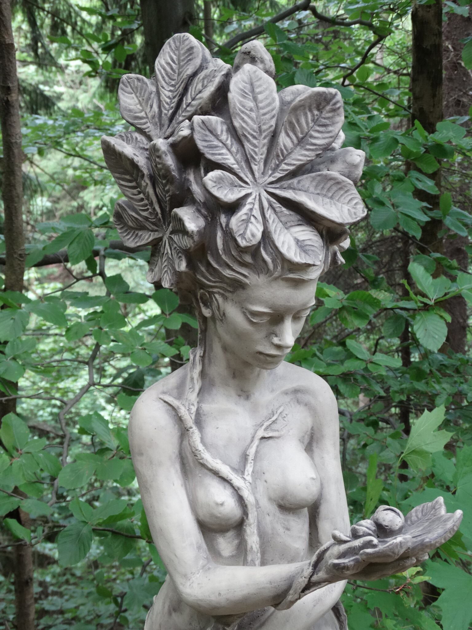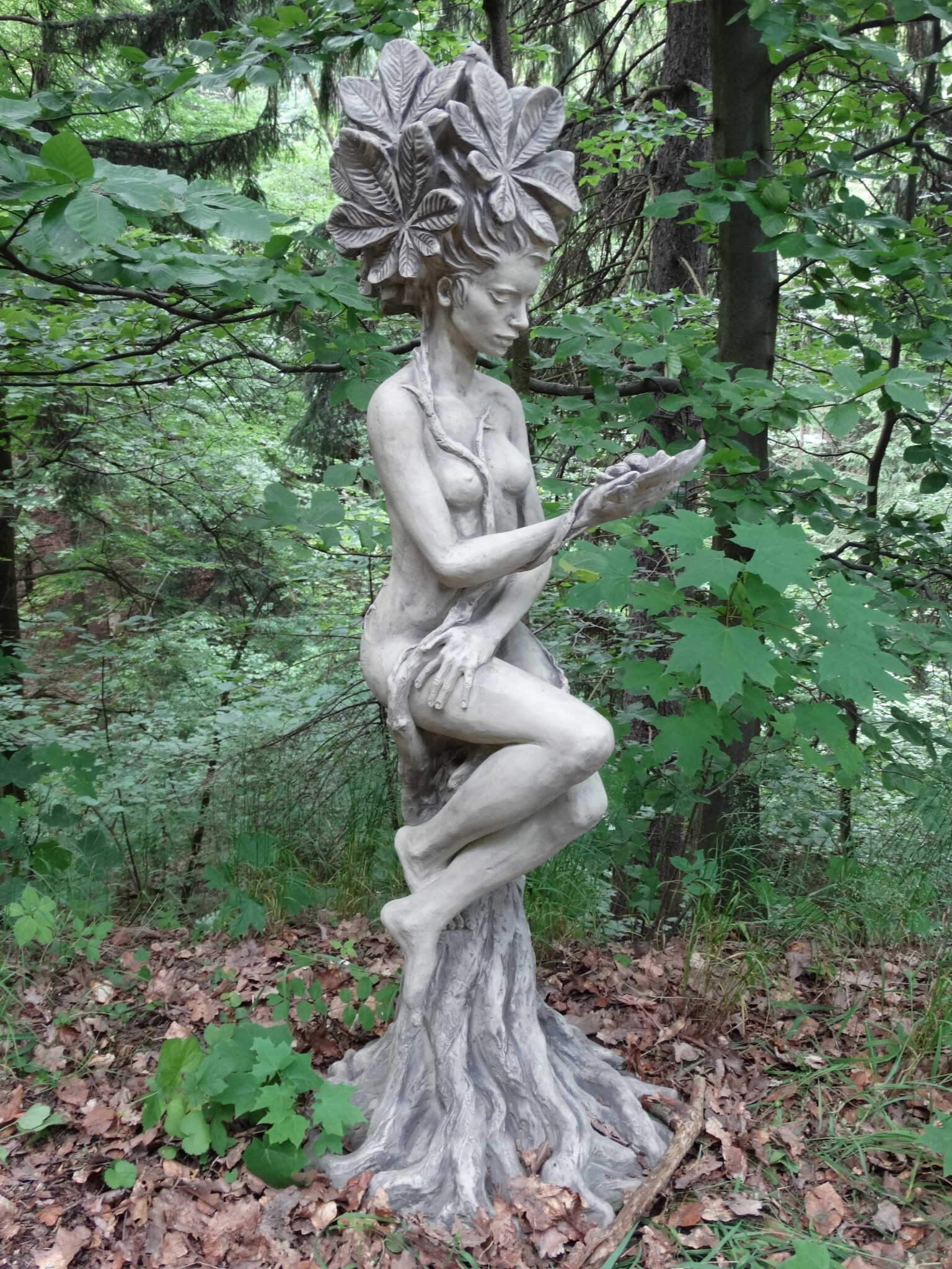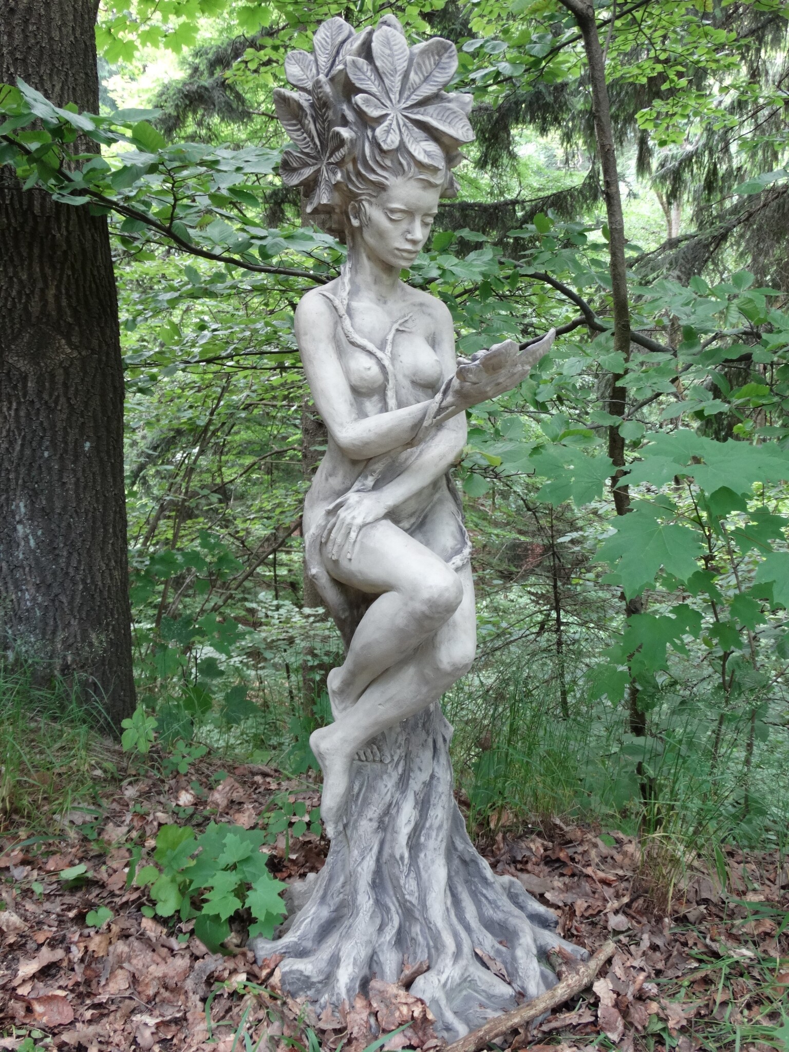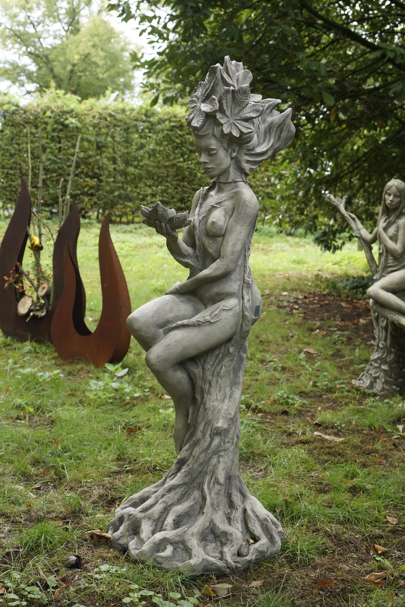 Een prachtig vormgegeven model tuinbeeld in de vorm van een Bosnimf. Gemaakt van het allerbeste gietsteen.