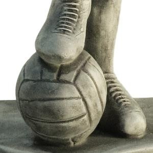Mooie stenen beeld van een gedetailleerde voetballer, dat staat toch mooi in de tuin bij elke voetbalfan. Massief beeld gemaakt van gietsteen. 91 cm hoog en 33 kg zwaar.