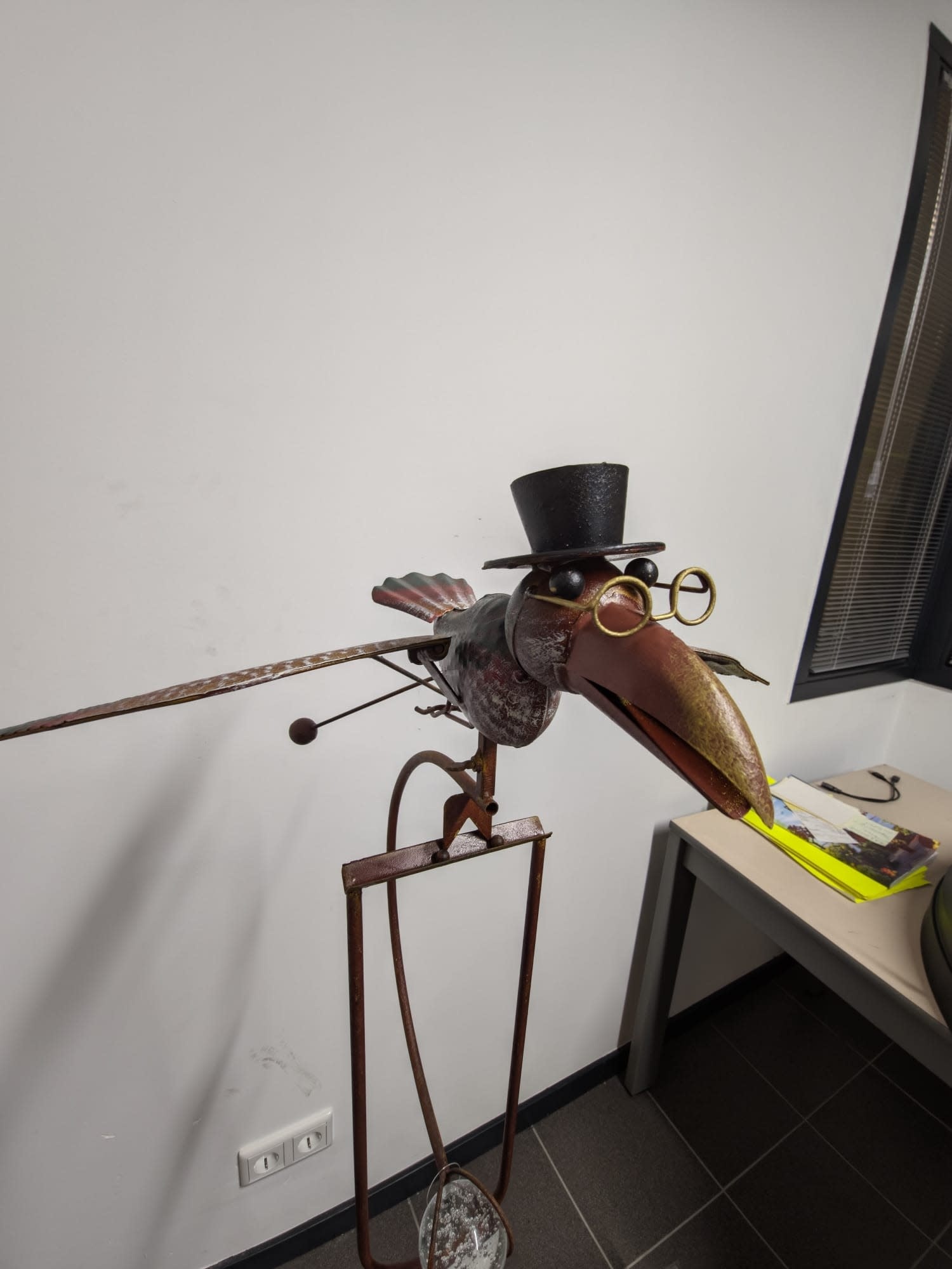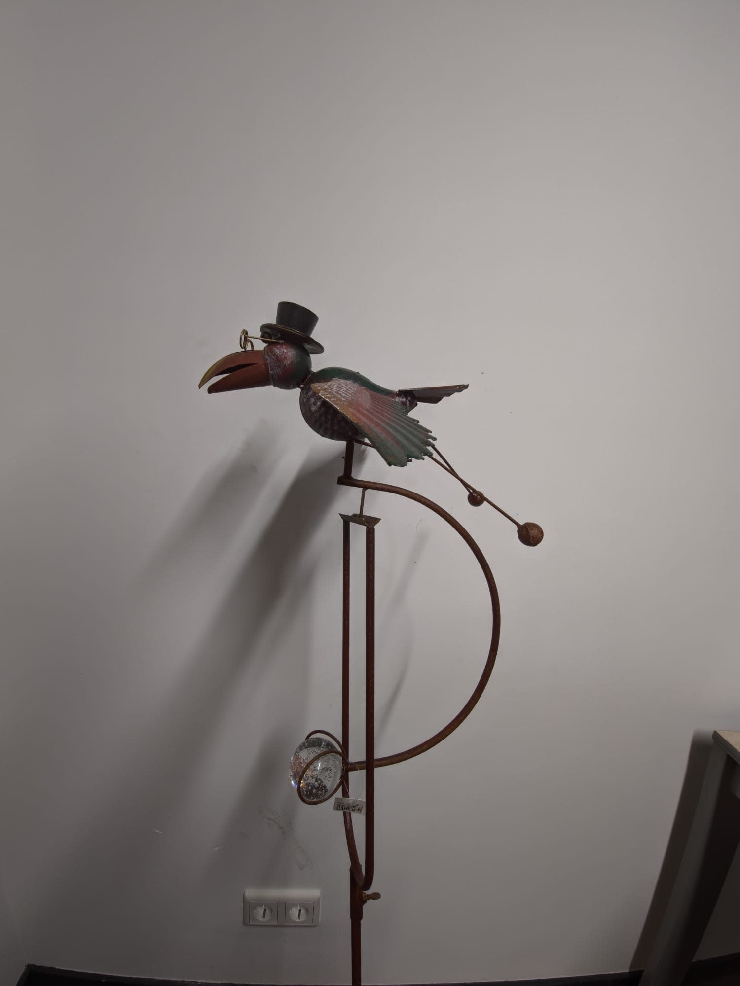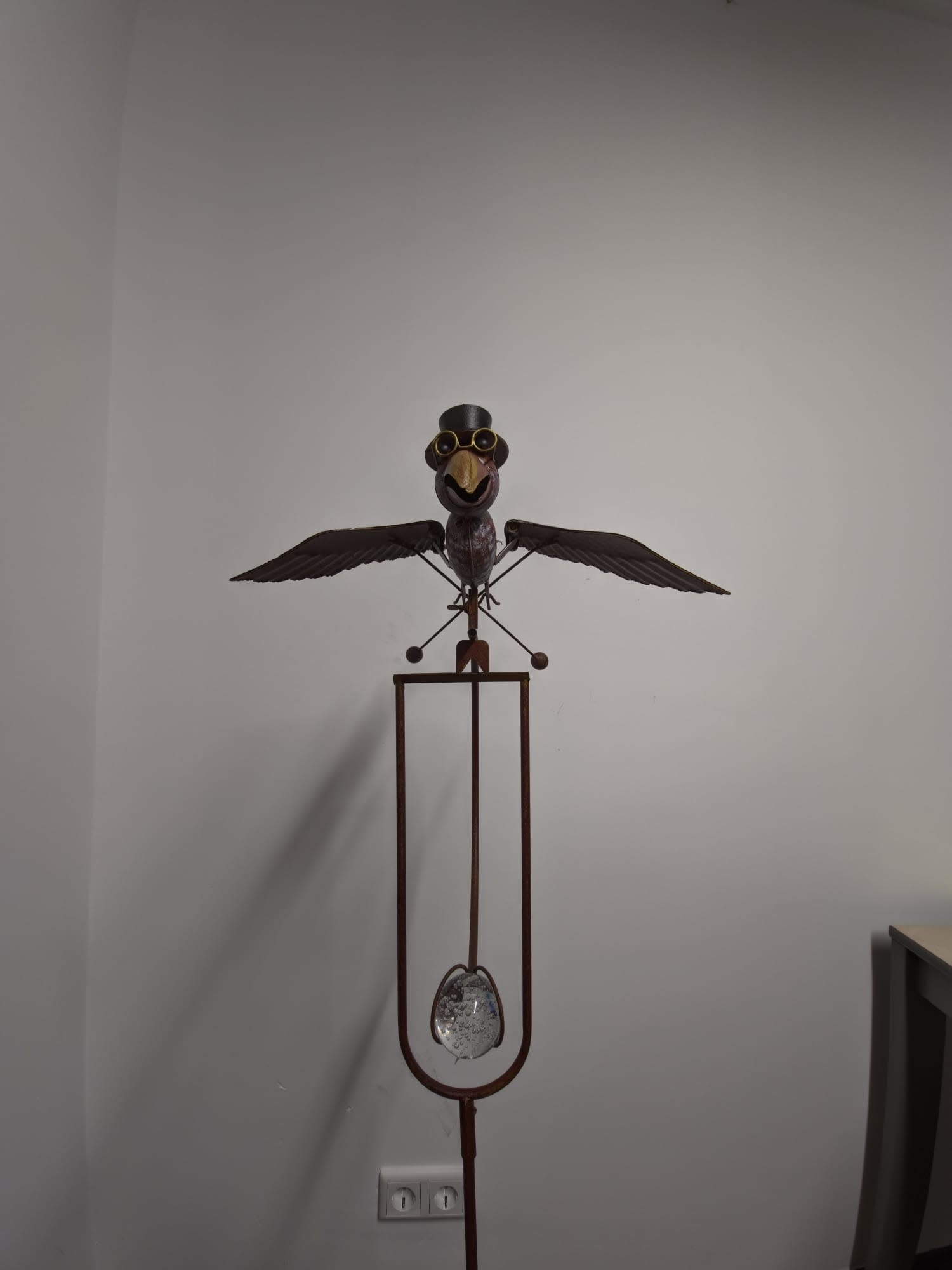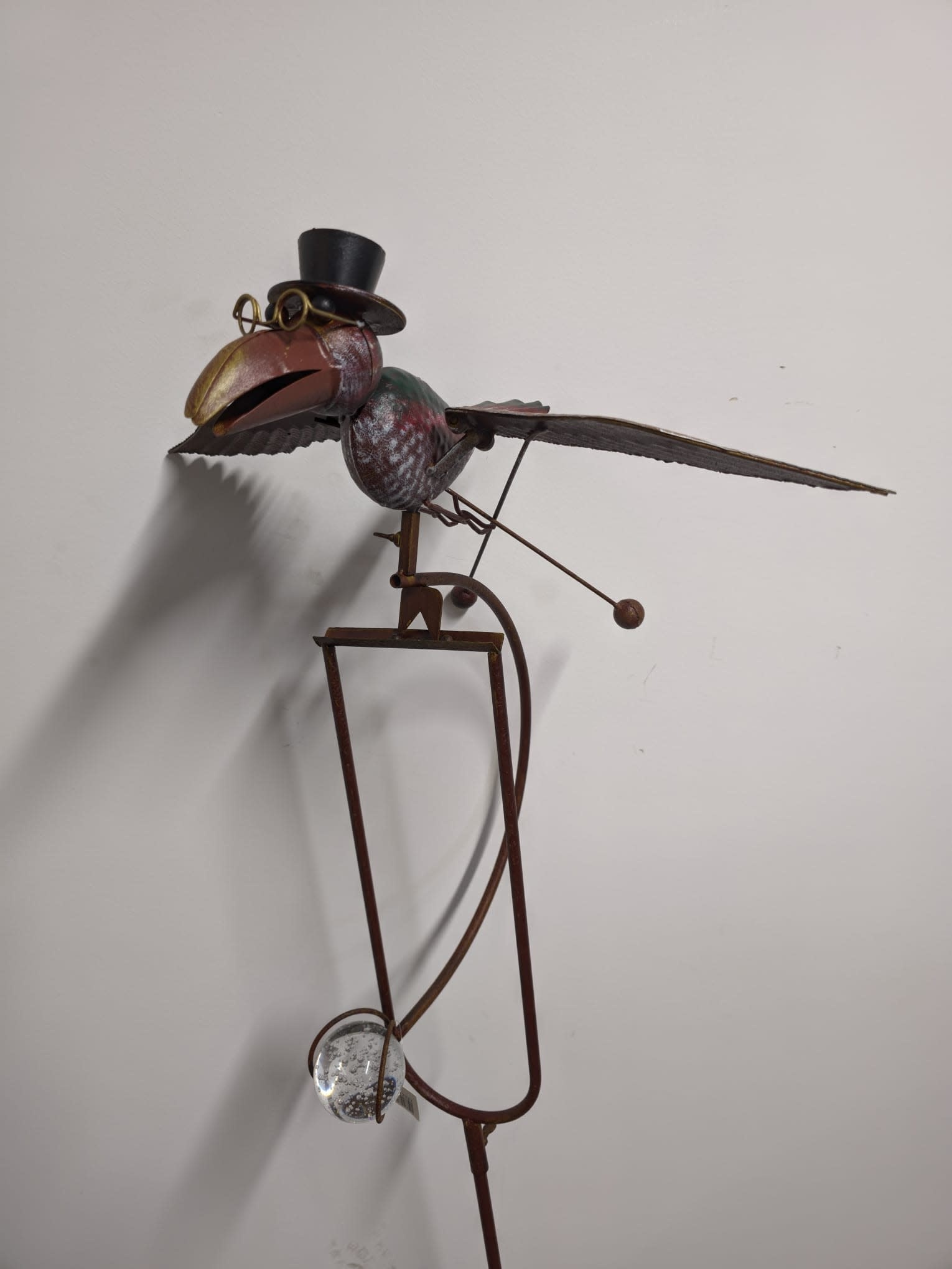 Tuinsteker balans wijze vogel met bril en hoed vliegend 48x133cm
