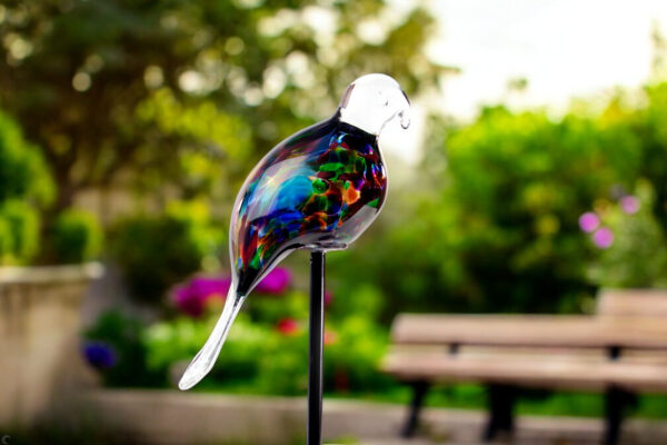 Tuinsteker glas vogel lage staart Donker multi gekleurd 22cm