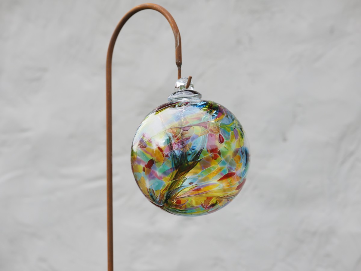 Tuinsteker multicolor glazen bol aan haak 120cm hoog