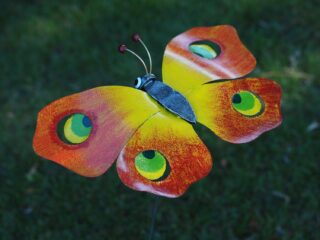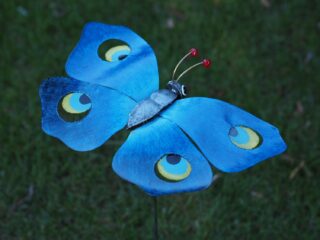De metalen tuinstekers zijn bovendien beschikbaar in diverse afmetingen. Van kleine, subtiele stukken die perfect zijn voor compacte tuinen tot grotere, indrukwekkende sculpturen die in ruimere buitenruimtes passen. Kies bijvoorbeeld de verfijnde kleine glazen rode bol van 20 cm, die op een pin staat van 90 cm hoog. Of ga voor de grote en handgemaakte vlinder van 85 cm. Elke steker is ontworpen om harmonieus op te gaan in verschillende tuinomgevingen. Met deze verscheidenheid aan maten en stijlen kies je eenvoudig de juiste tuinstekers, die passen bij de schaal en het karakter van jouw tuin.