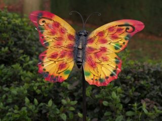 De metalen tuinstekers zijn bovendien beschikbaar in diverse afmetingen. Van kleine, subtiele stukken die perfect zijn voor compacte tuinen tot grotere, indrukwekkende sculpturen die in ruimere buitenruimtes passen. Kies bijvoorbeeld de verfijnde kleine glazen rode bol van 20 cm, die op een pin staat van 90 cm hoog. Of ga voor de grote en handgemaakte vlinder van 85 cm. Elke steker is ontworpen om harmonieus op te gaan in verschillende tuinomgevingen. Met deze verscheidenheid aan maten en stijlen kies je eenvoudig de juiste tuinstekers, die passen bij de schaal en het karakter van jouw tuin.