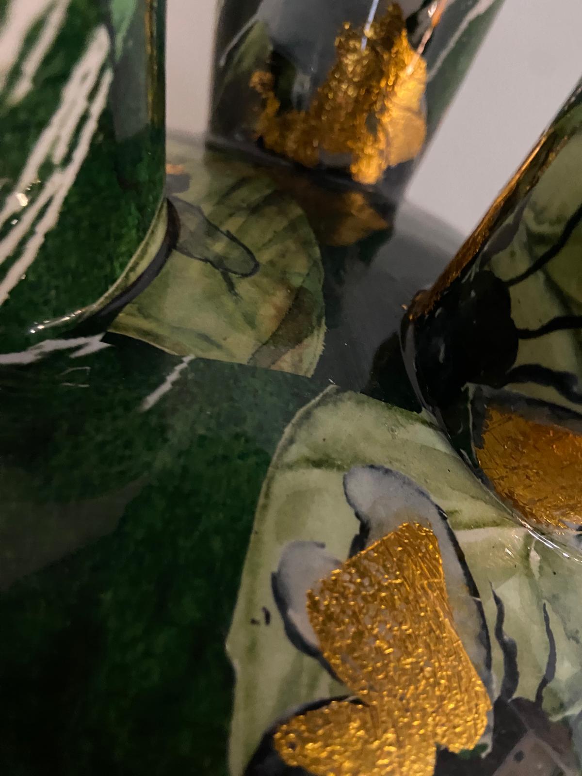 Deze potten en vazen zijn zorgvuldig waterdicht gemaakt van metaal, met daar overheen de prachtige kleuren transfer. De binnenzijde is zwart gecoat.