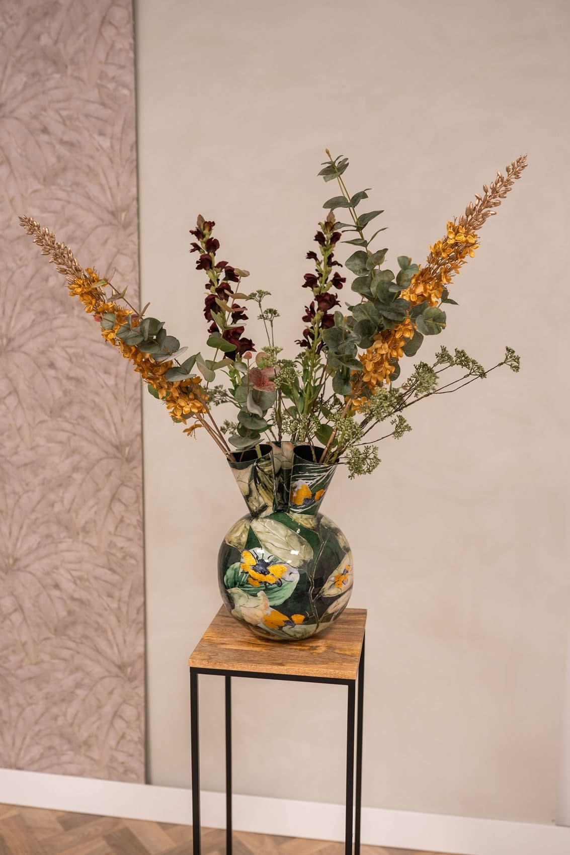Ondanks dat deze pottenserie waterdicht is, wordt er toch geadviseerd om een waterdichte passende pot of vaas in de overpot te plaatsen waarin de verse bloemen komen, om roestvorming te voorkomen. Het spreekt voor zich dat dit natuurlijk niet nodig is met zijde bloemen.