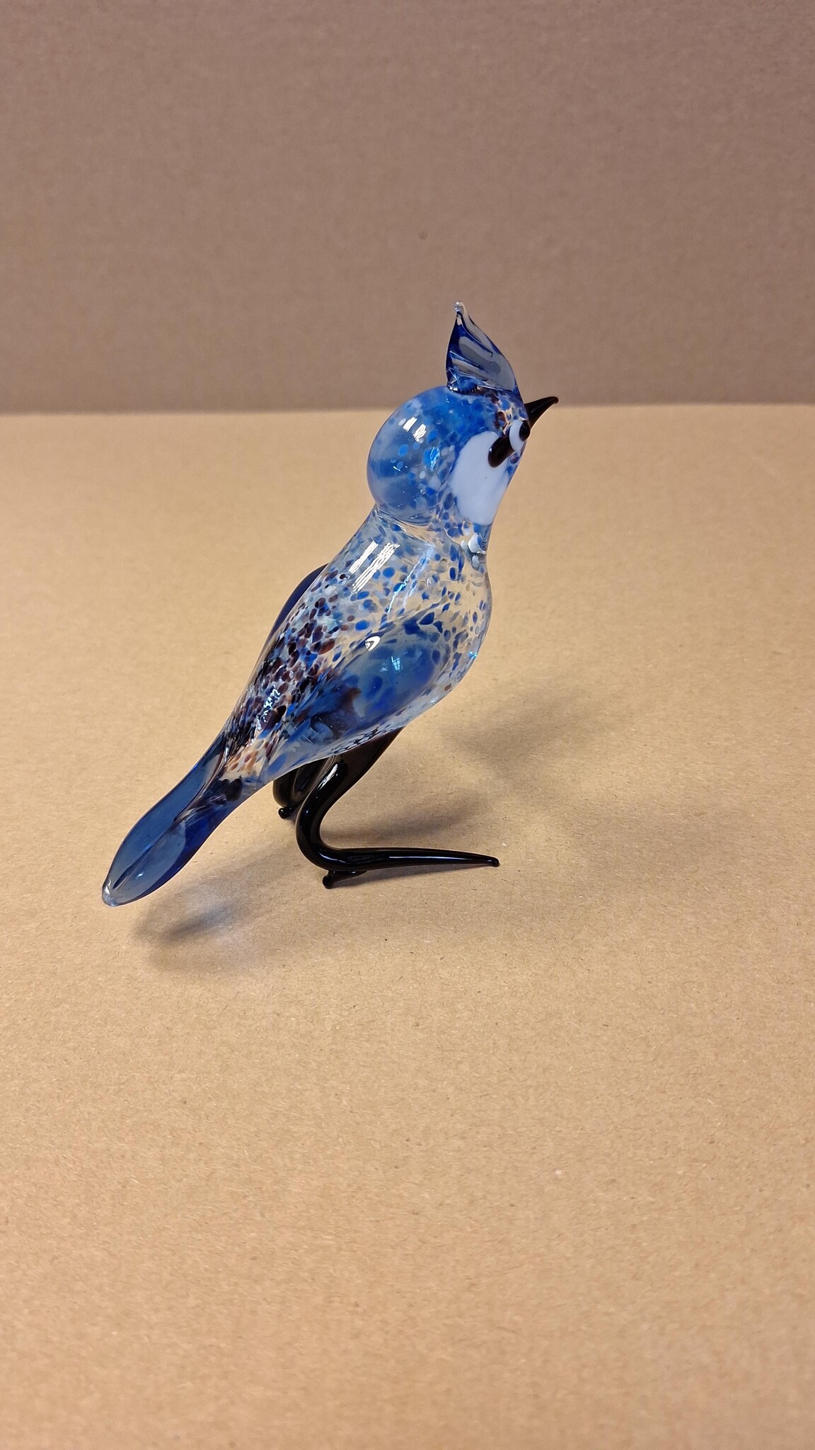 Vlaamse gaai vogel van glas 12cm handgemaakt