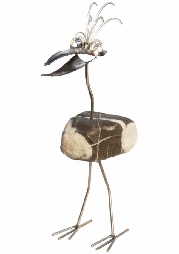 Leuk in de tuin maar ook binnenshuis, deze exclusieve figuur van een vogel met een natuurkei als lijf. Stevig staand, met een levenslange levensduur bij normale omstandigheden.Geheel is ambachtelijk gemaakt van rvs. Doordat het handwerk is zullen er altijd kleine verschillen in elk exemplaar kunnen bestaan met de foto, Ook de kei kan anders zijn qua kleur en vorm, hierop kan niet gereclameerd worden.