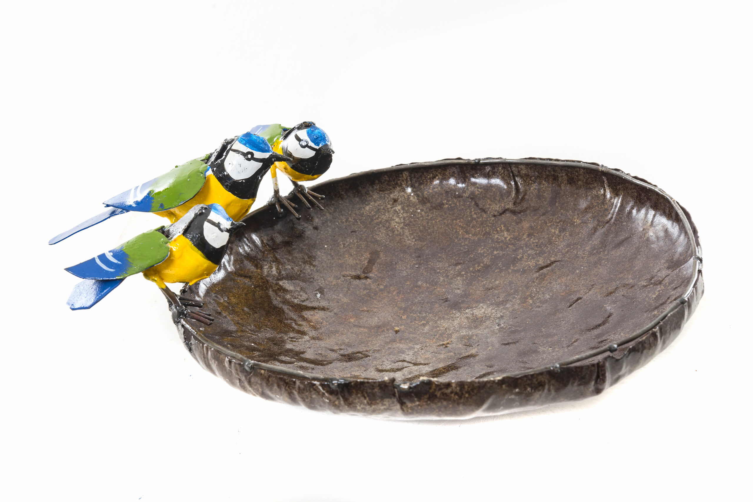 Vogeldrinkschaal met drie koolmeesjes 32cm