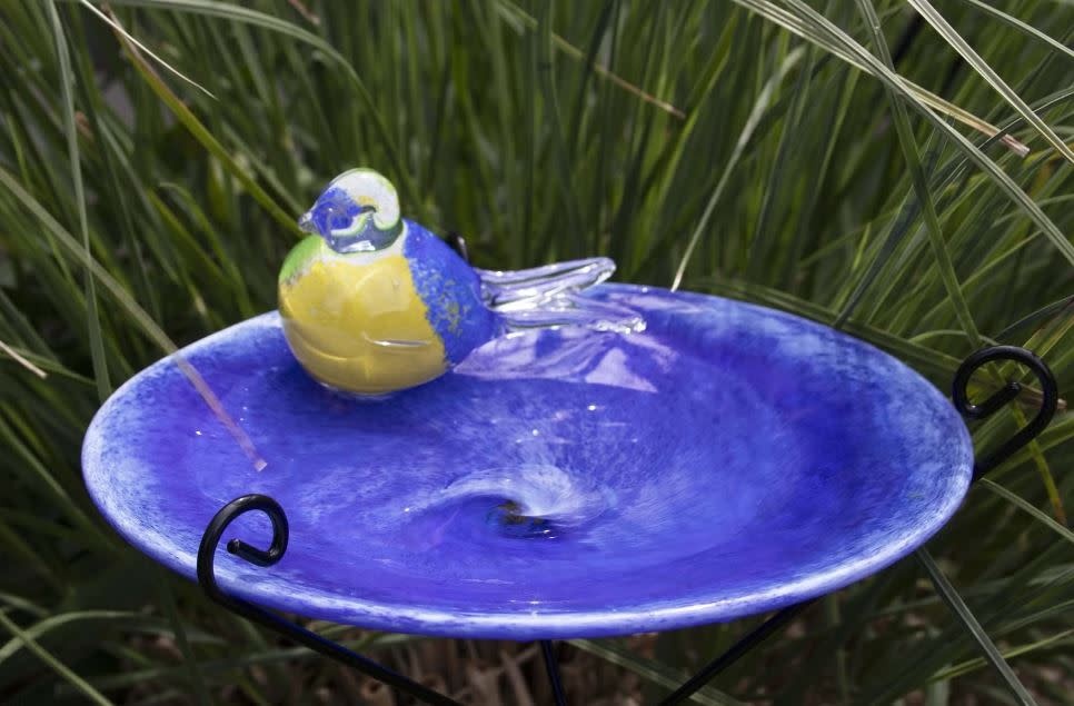 In elke tuin zal deze blauw-kleurige glazen vogeldrinkschaal op tuinsteker een leuk plekje kunnen krijgen.
