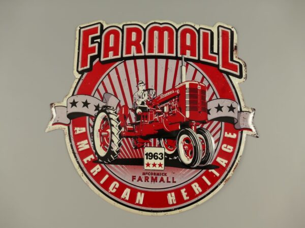 Deze wanddeco is gemaakt van plaatstaal, met een gespoten ondergrond met daarover een transfer en vaak een omgekrulde rand.