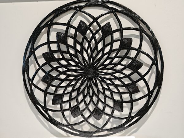 Dit stuk muurdecoratie is een lust voor het oog. Dit model muurdecoratie van een abstracte bloem is gemaakt in Haïti, door de zgn Bosmetal werkers, en van de bovenkant van een oliedrum, en hiermee is men dagenlang aan het werk om dit product te realiseren. Knippen, met hamer bollen of juist vlakken, met drevel bewerken en schilderen. Als men het artikel goed bekijkt sta je er versteld hoeveel werk moet zijn geweest. Als u dit artikel bestelt steunt u de wereldwinkel organisatie Our Market en steunt u deze mensen in het straatarme Haïti.