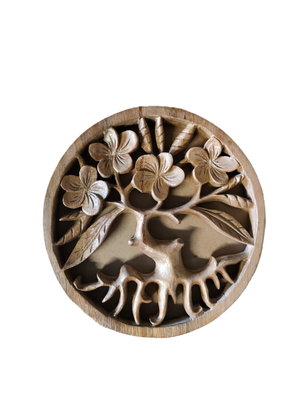 Handgesneden houten wandpaneel 20cm met een levensboom met bloemen afbeelding