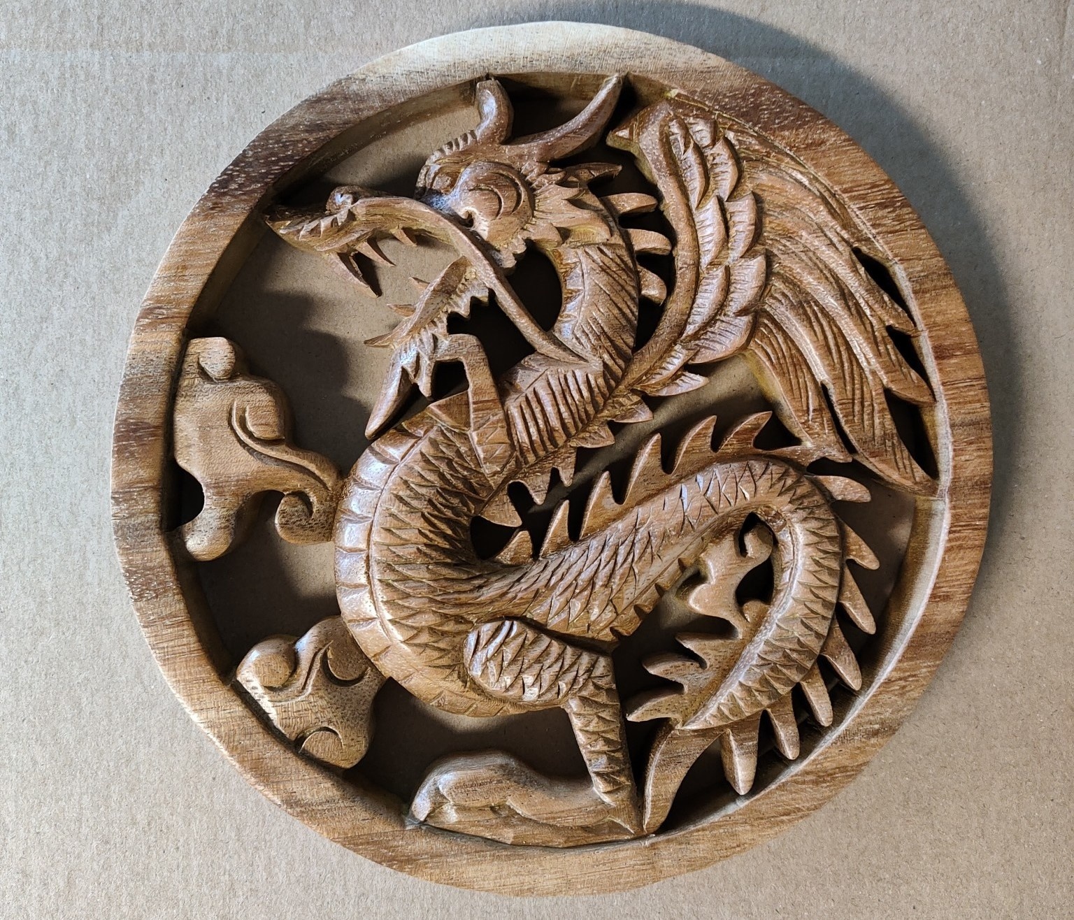 Wandpaneeltje hout rond Slangendraak 20cm