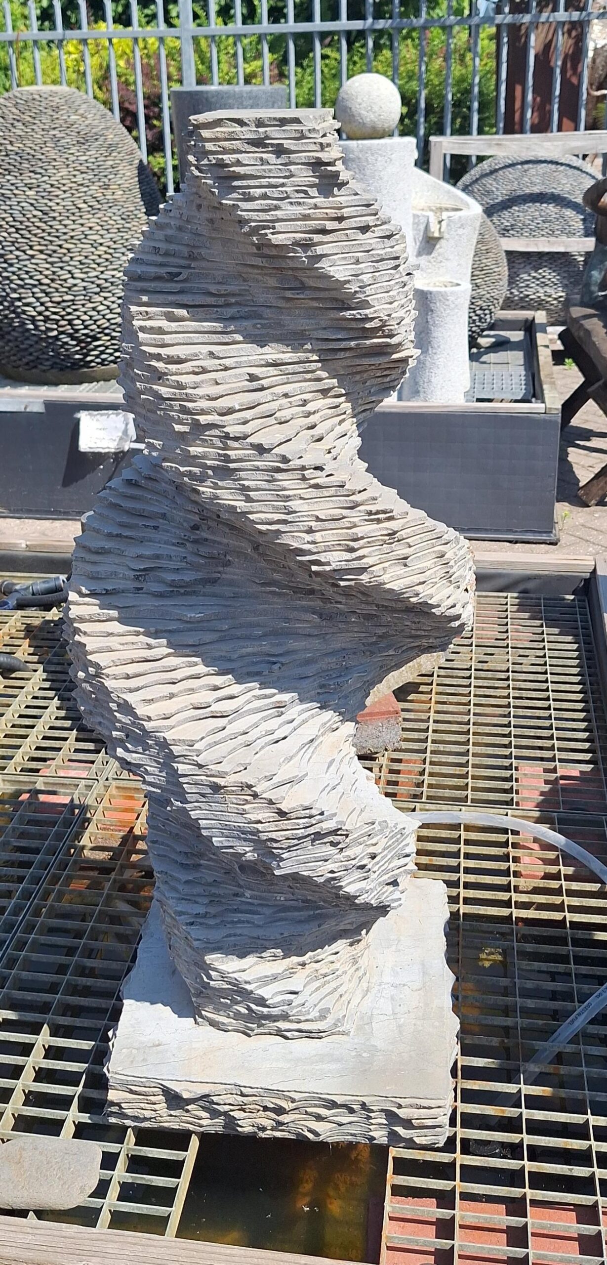 Waterplateau van marmer, door trapsgewijze opbouw zal dit model waterpartij voor het nodige watergekletter zorgen. In het donker is het nog mooier als het verlicht wordt met een spot.