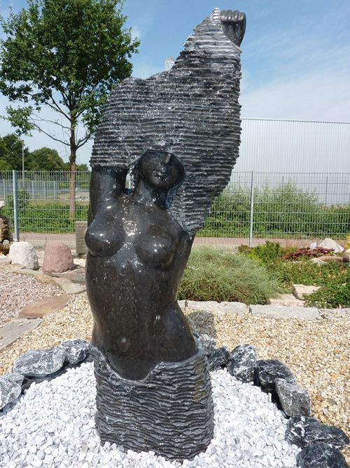 Ook mooi te combineren met een sokkel zoals op de foto. Geeft in het donker een schitterend effect met een spot doordat het water over de ribbels loopt. Ook schitterend mooi object wanneer het water niet loopt. In natuursteen kan het anders lopen, dit is normaal en kan niet gereclameerd worden.